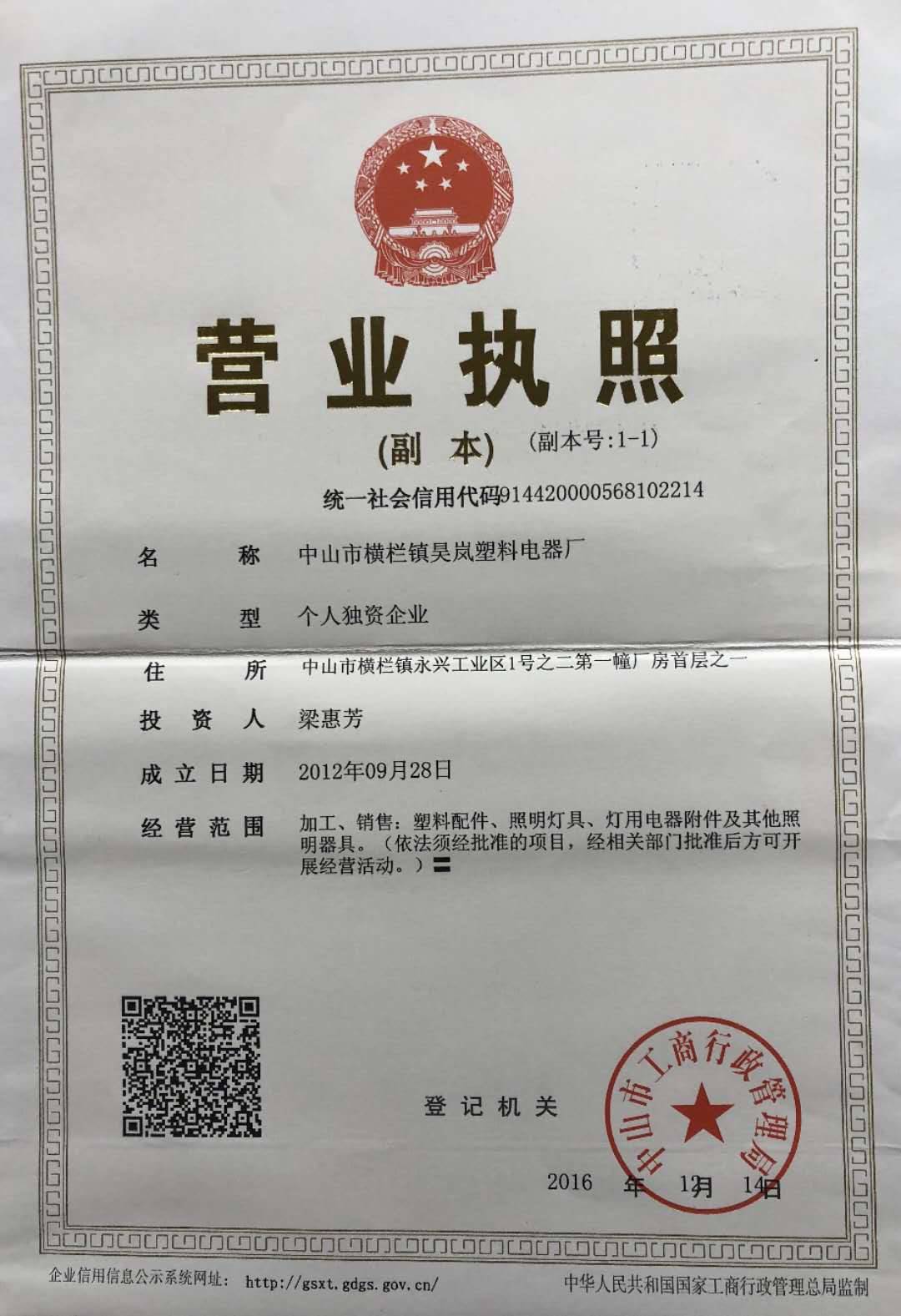 中山市横栏镇昊岚塑料电器厂