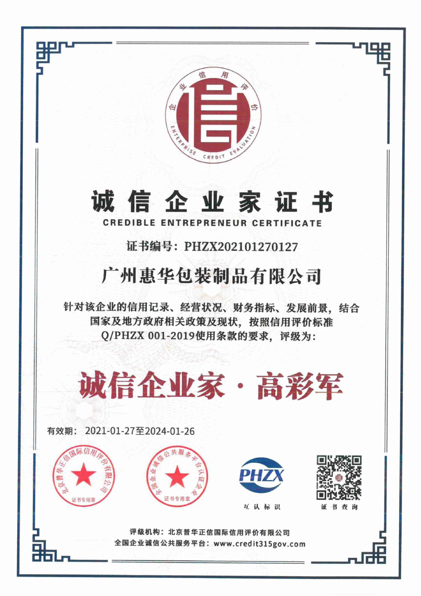 广州惠华包装制品有限公司是一家能够打造专业食品级的纸品、塑料制品、五金包装制品企业。公司成立于2005年11月,注册资金100万,同时通过并使用ISO9001:2008质量管理体系、FSSC22000...