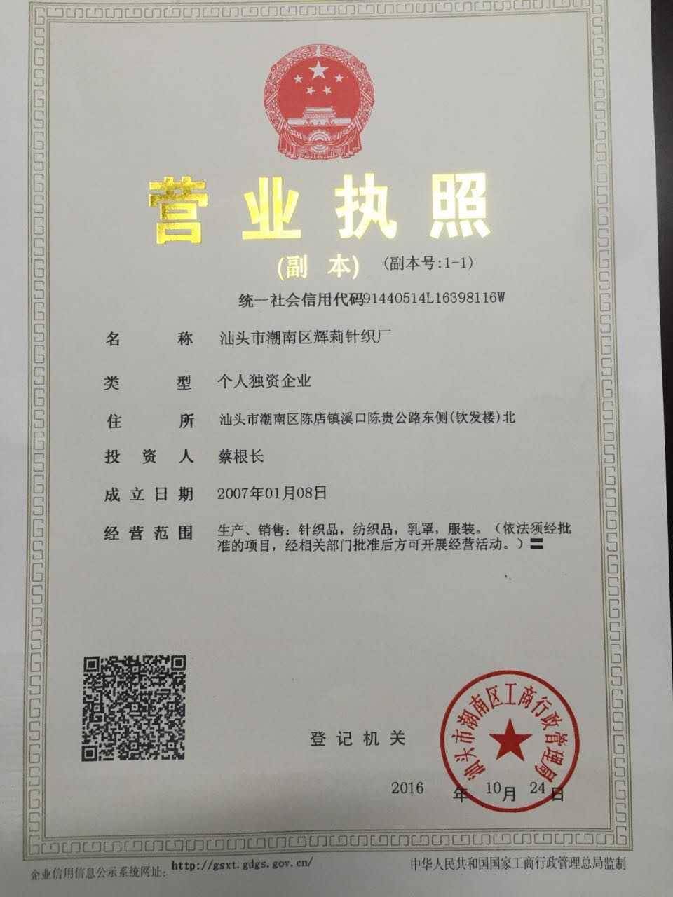 汕头市潮南区辉莉针织厂