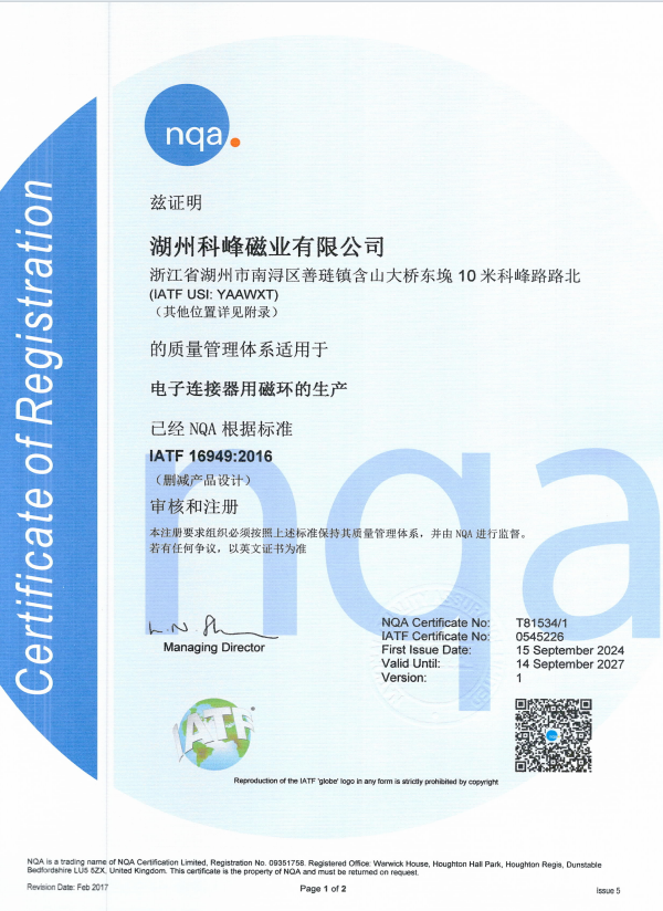 湖州科峰磁业是一家集生产、经营、科研、技术开发及信息服务为一体的科技先导型企业,为浙江省高新技术企业,具有二十余年行业经验。科峰现有职工360多人,管理技术人员60人,自建企业技术中心,拥有国际先进的...