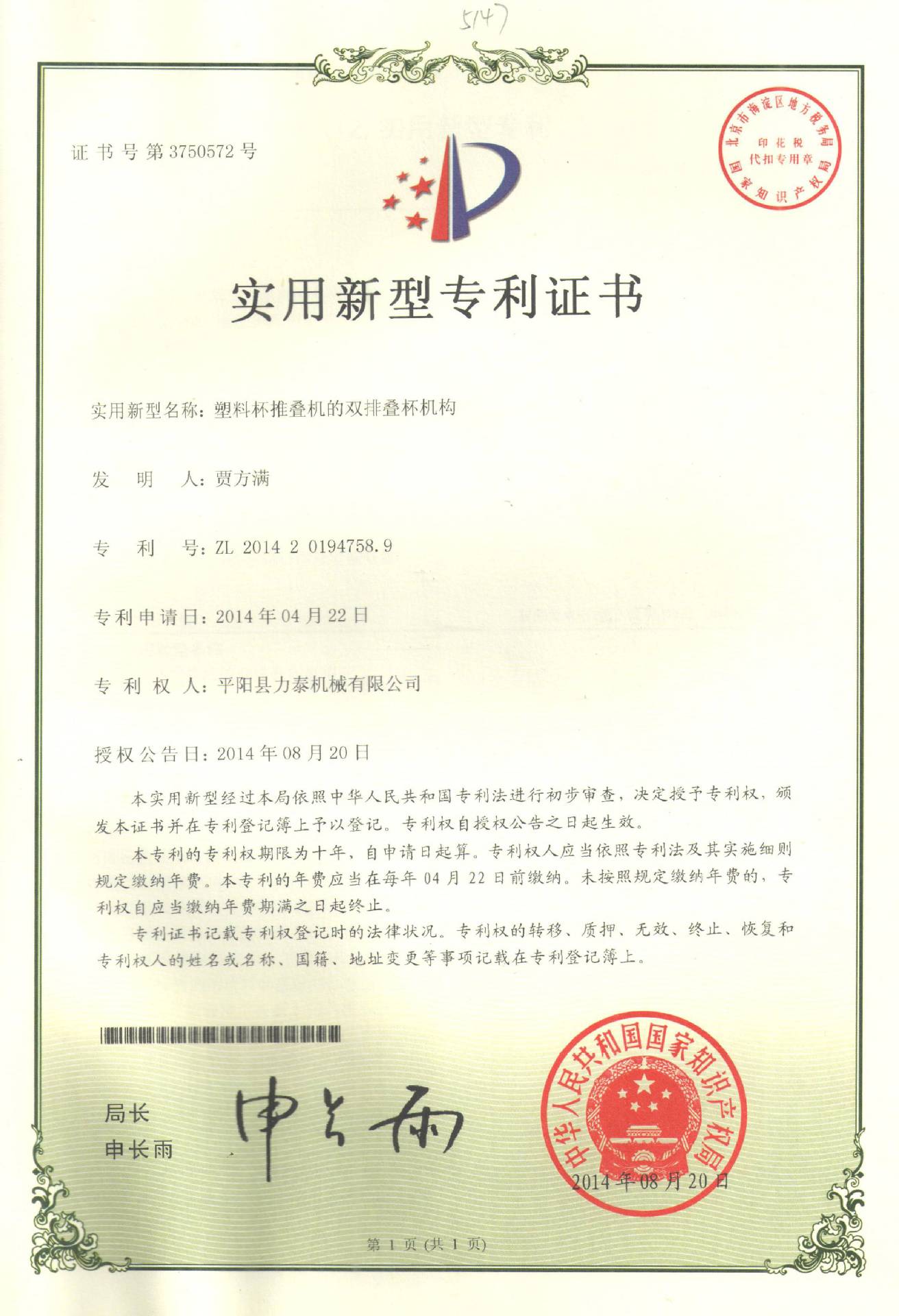 一种塑料杯堆叠机的堆叠机构CN202864476U
