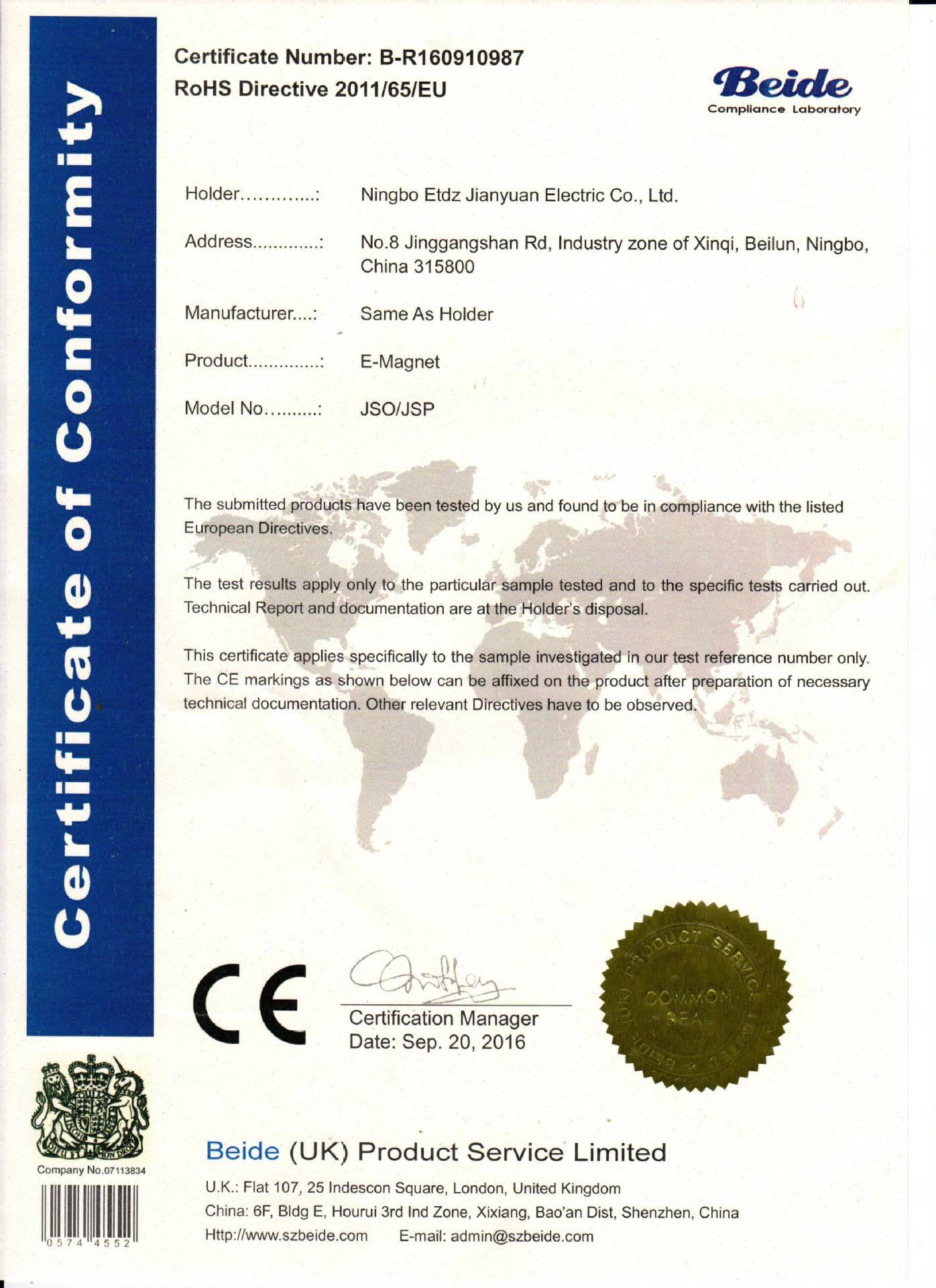 拥有CE认证