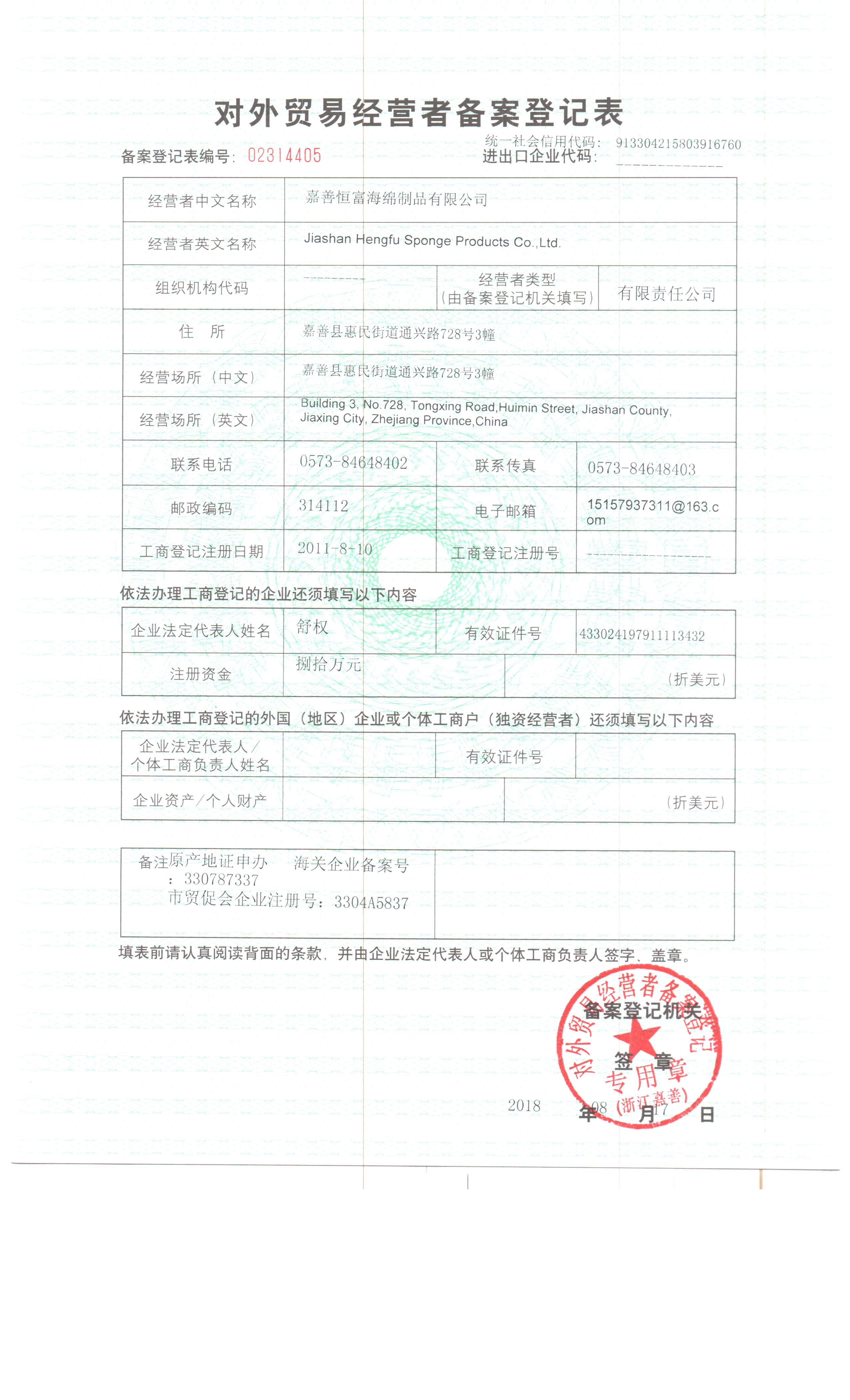 嘉善恒富海绵制品有限公司