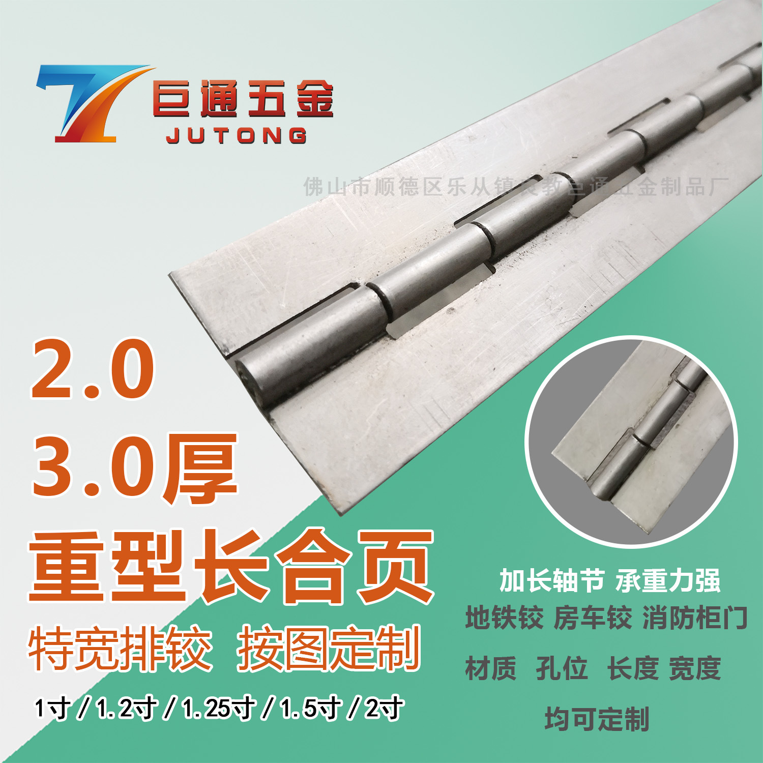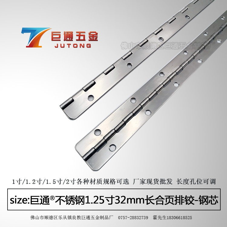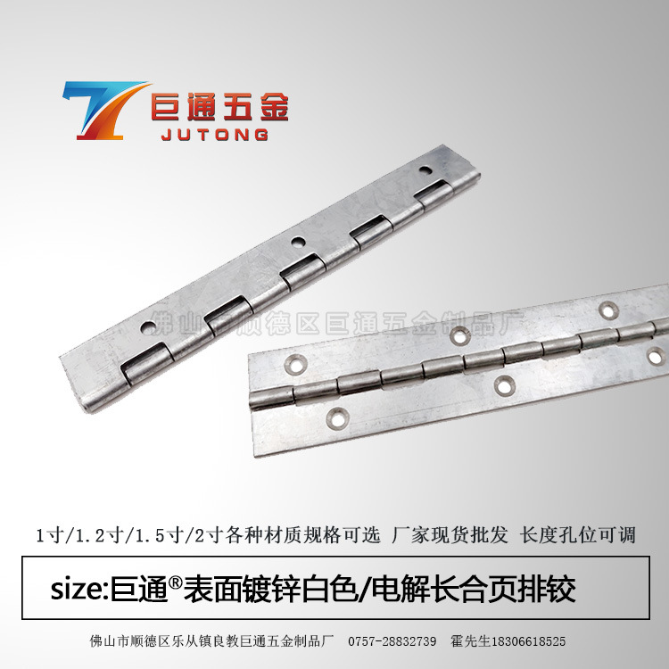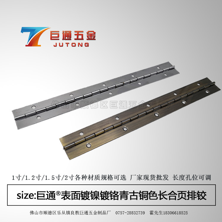佛山市顺德区乐从镇良教巨通五金制品厂位于“制造业之乡”广东省佛山市,主要从事生产和制造不锈钢长合页、排铰、适用于各类家具柜门、钣金箱体、箱包盒类翻盖的合页排铰、铰链、各类门窗厨卫五金配件等。自成立于2...