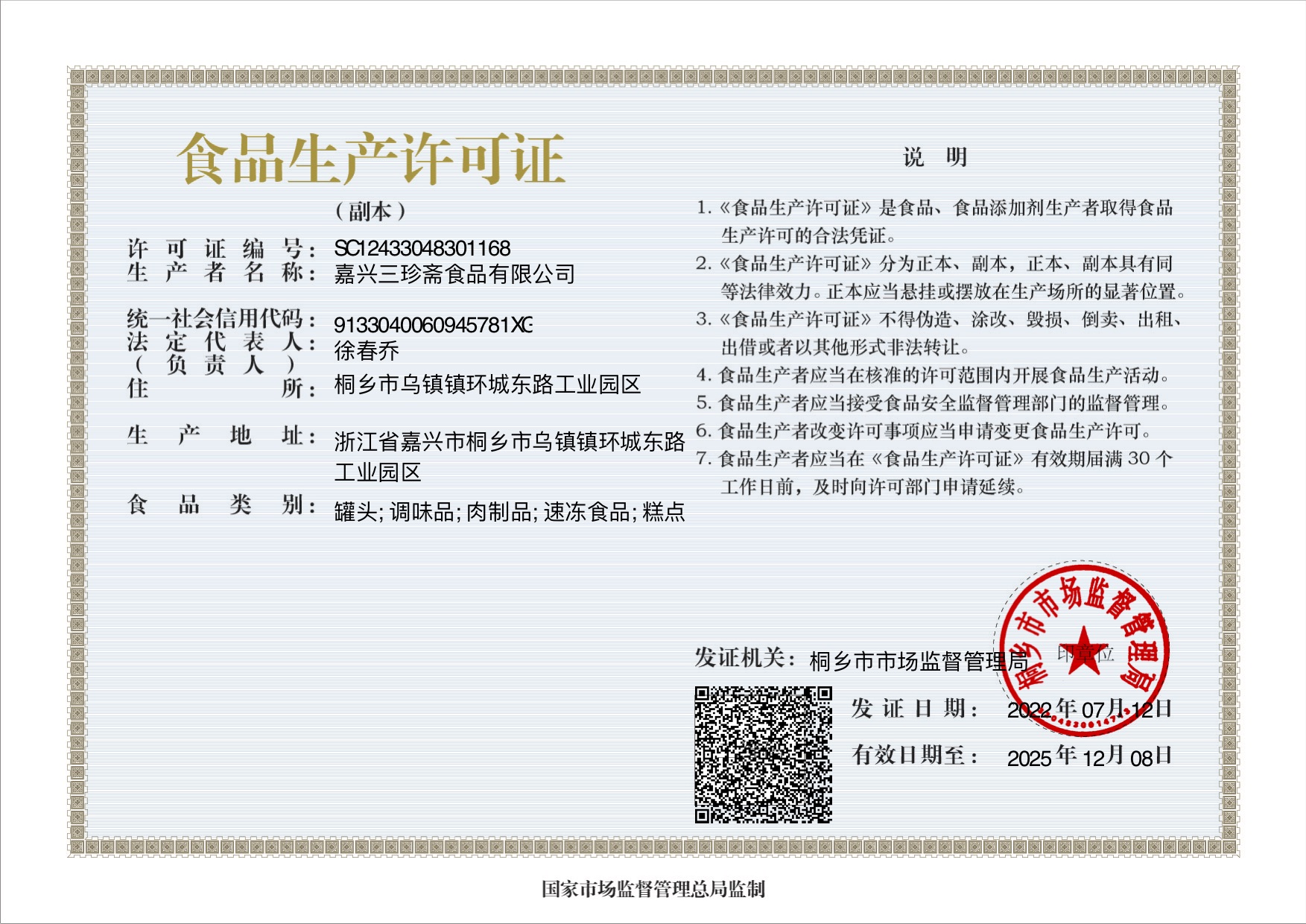 嘉兴三珍斋食品有限公司