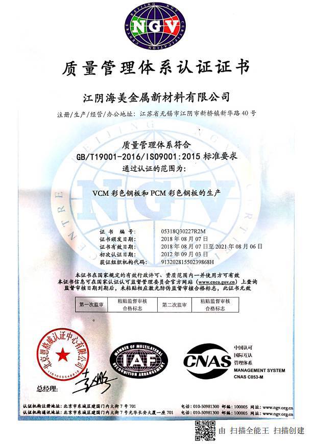 江阴海美金属新材料有限公司成立于2010年1月,是一家专注于高端覆膜金属复合材料研发、生产与销售的高新技术企业,注册资本3000万元,坐落于长三角核心区江阴市新桥镇,毗邻华西村,距上海港110公里、张...