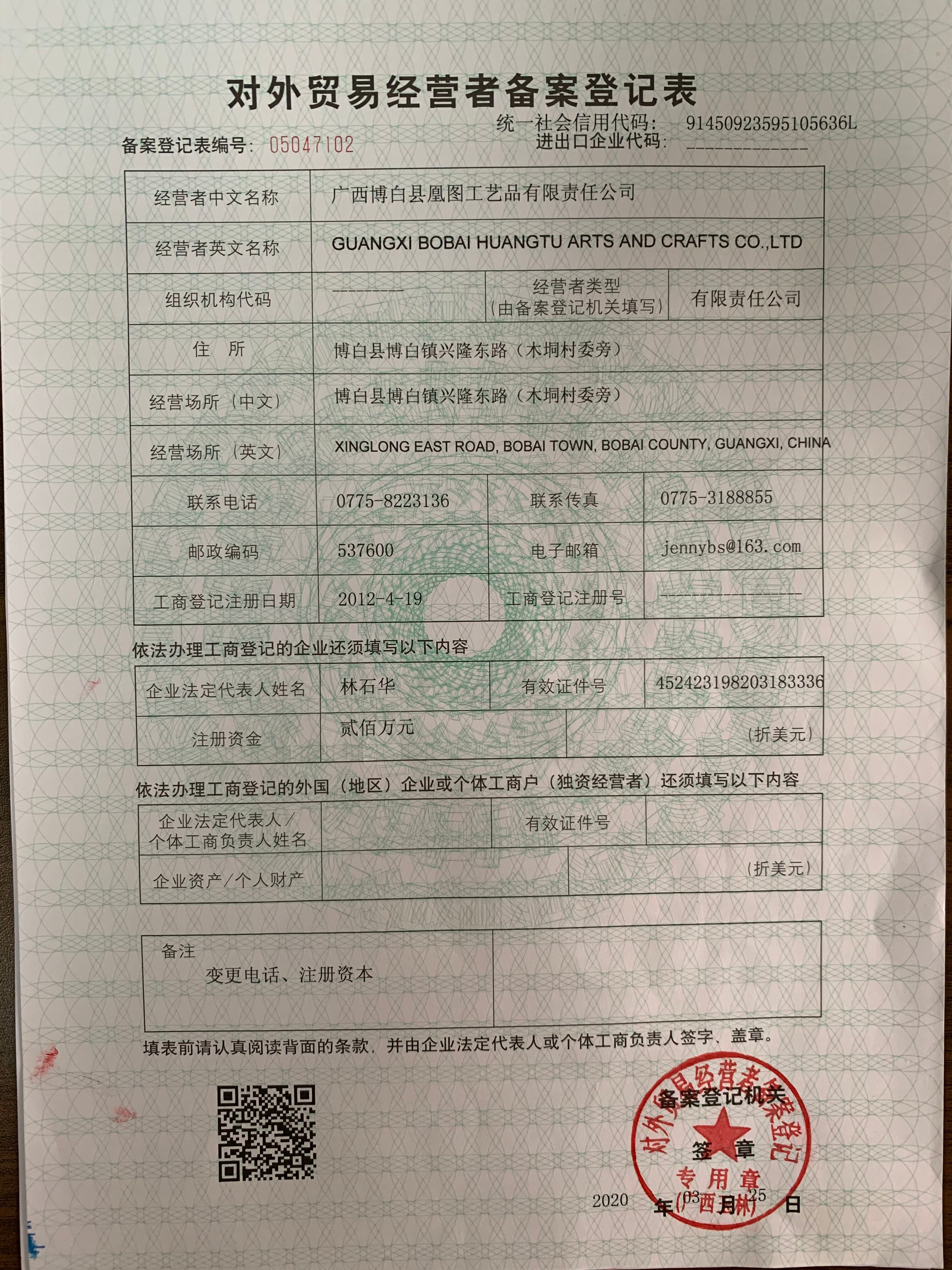 广西博白县凰图工艺品有限责任公司