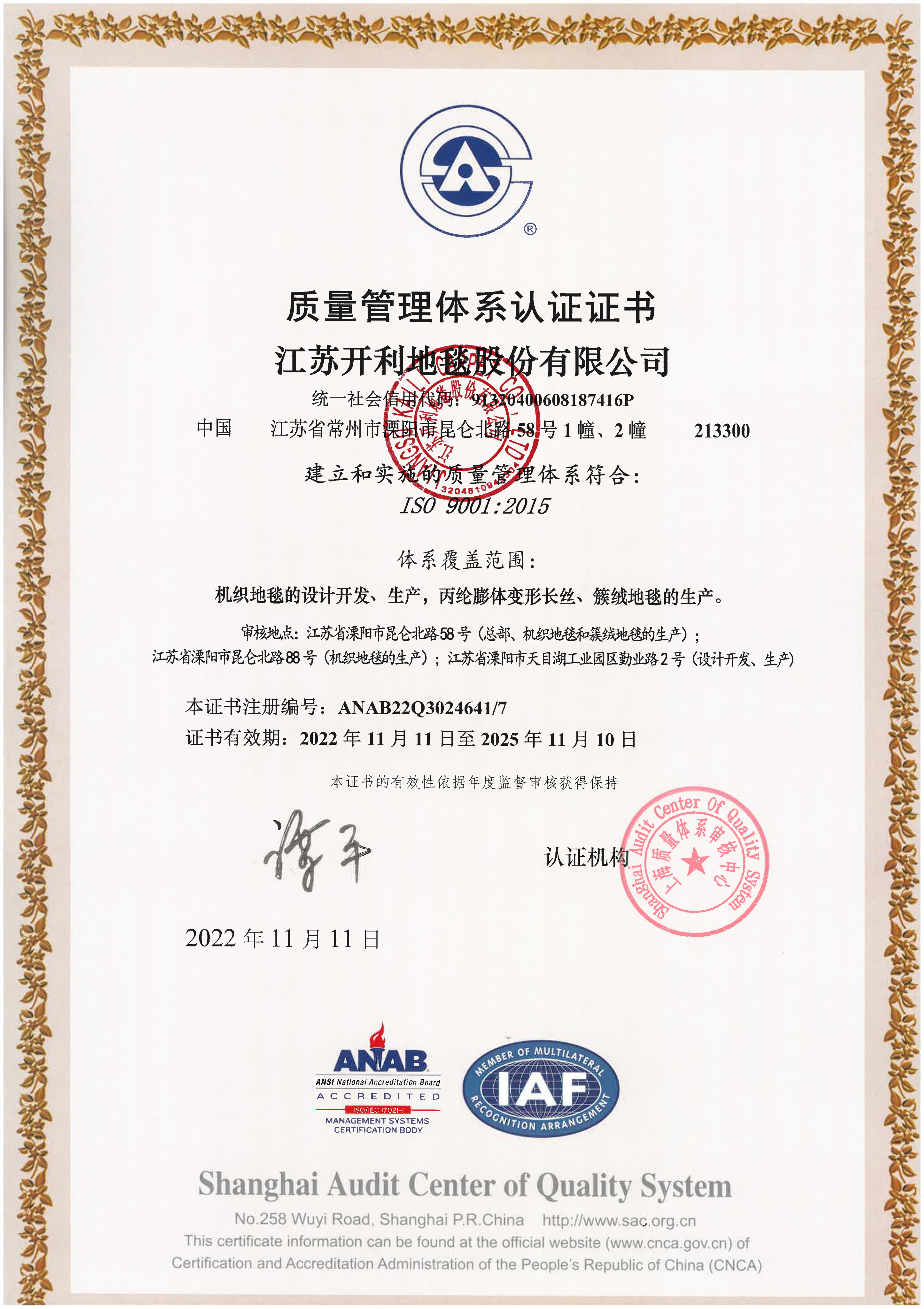 江苏开利地毯股份有限公司