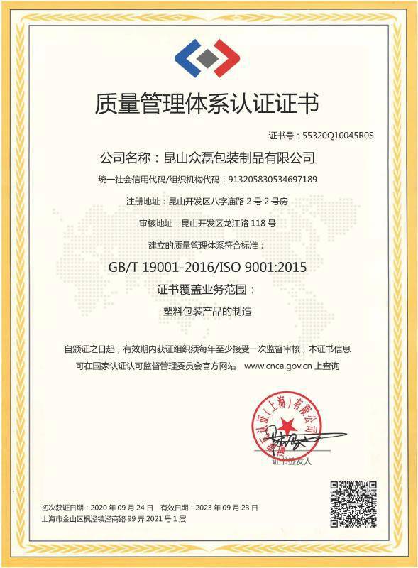 昆山众磊包装制品有限公司是一家专业设计、加工生产PE袋、OPP袋、自封袋、气泡袋(膜)、EPE袋(膜)、 PE筒膜、拉伸缠绕膜等各类包装制品企业。公司凭着先进的包装知识及经营理念,以及针对国内外市场的...