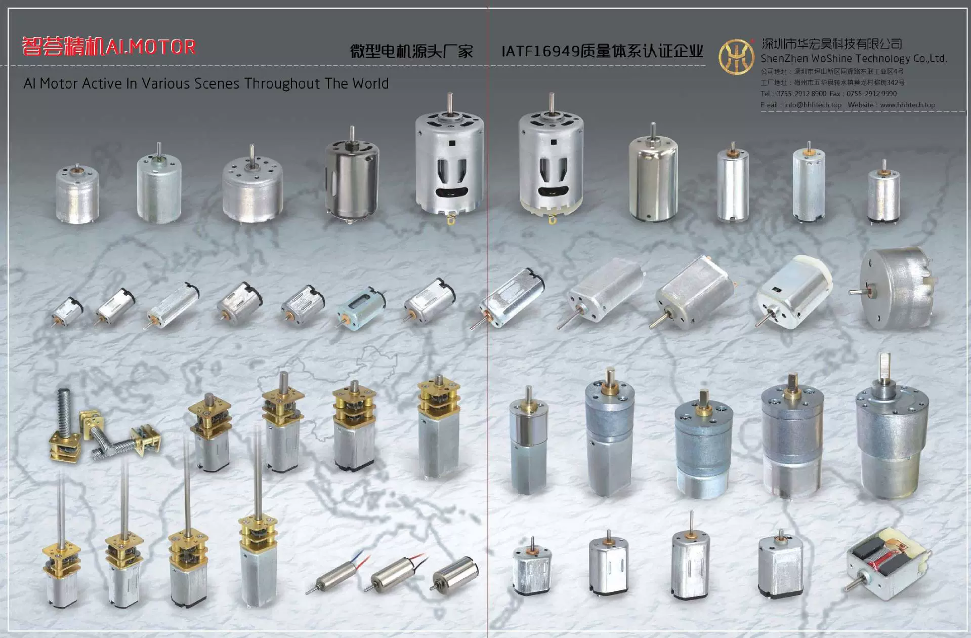 深圳市华宏昊科技有限公司创立于2010年,注册资本人民币伍佰万元。是一家民营高新科技企业,以直流有刷电机、无刷电机、步进电机、空心杯电机、防水电机、发电机、及微小模数减速电机及智能装备之研发制造、电子...