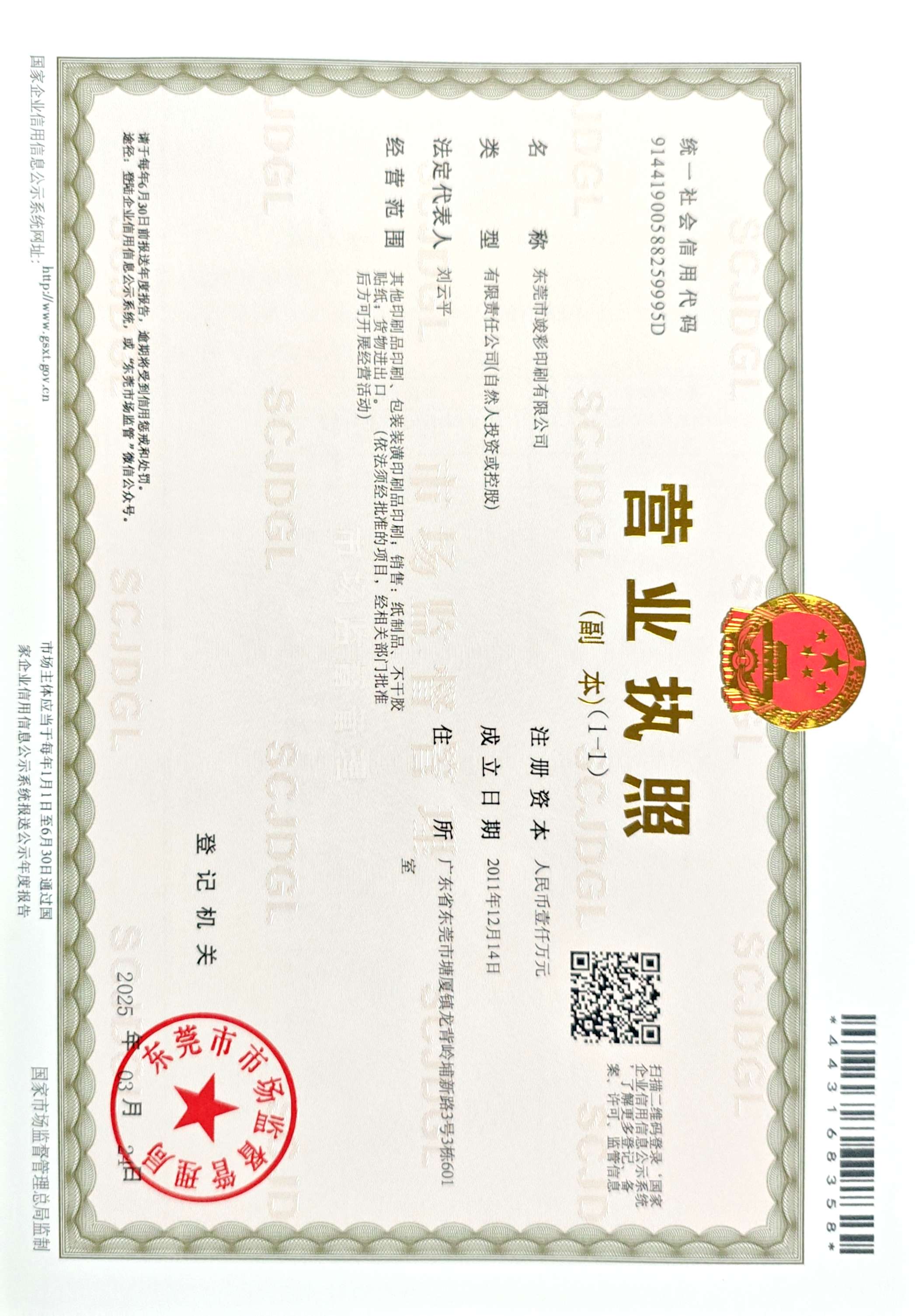 东莞市竣彩印刷有限公司