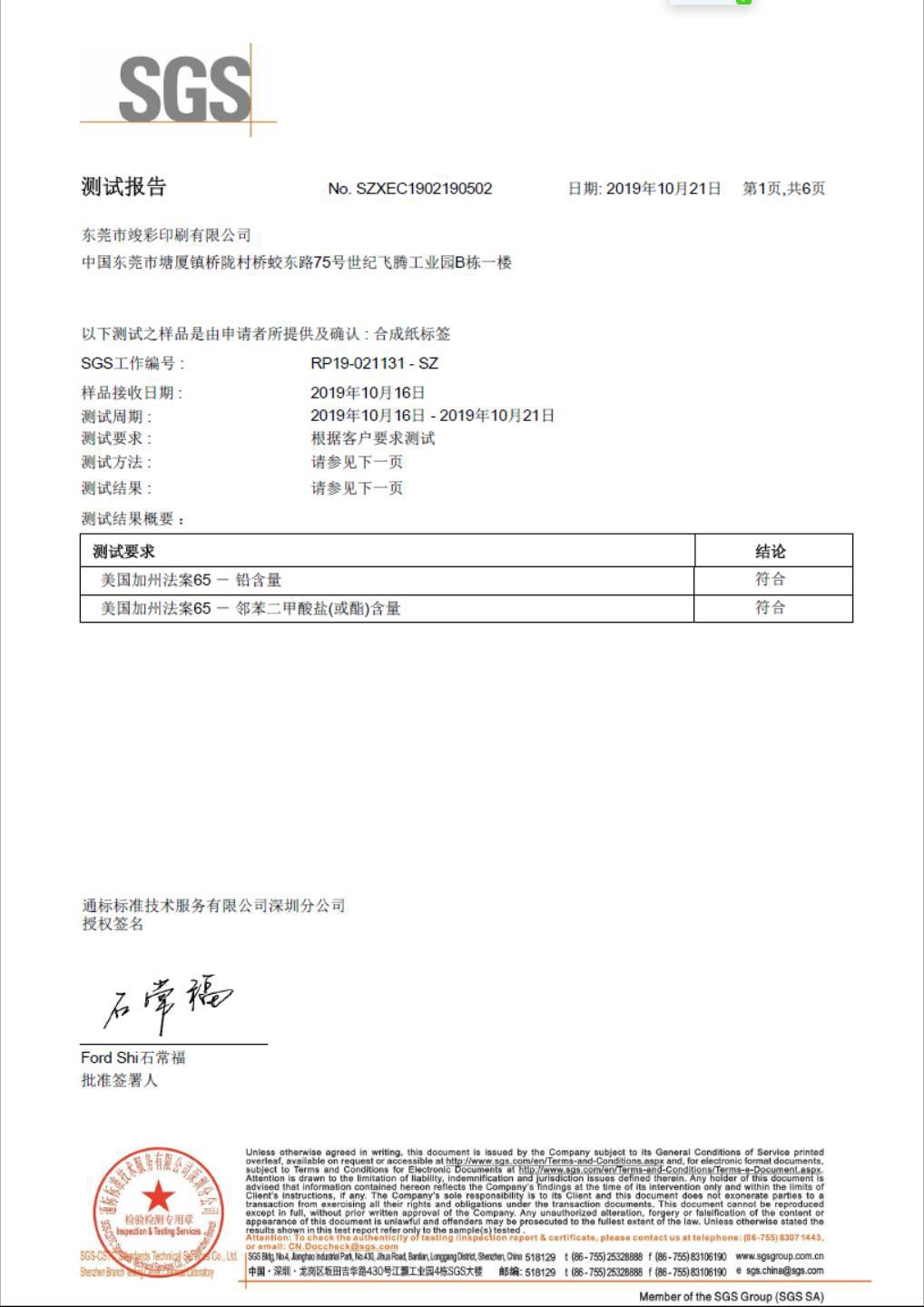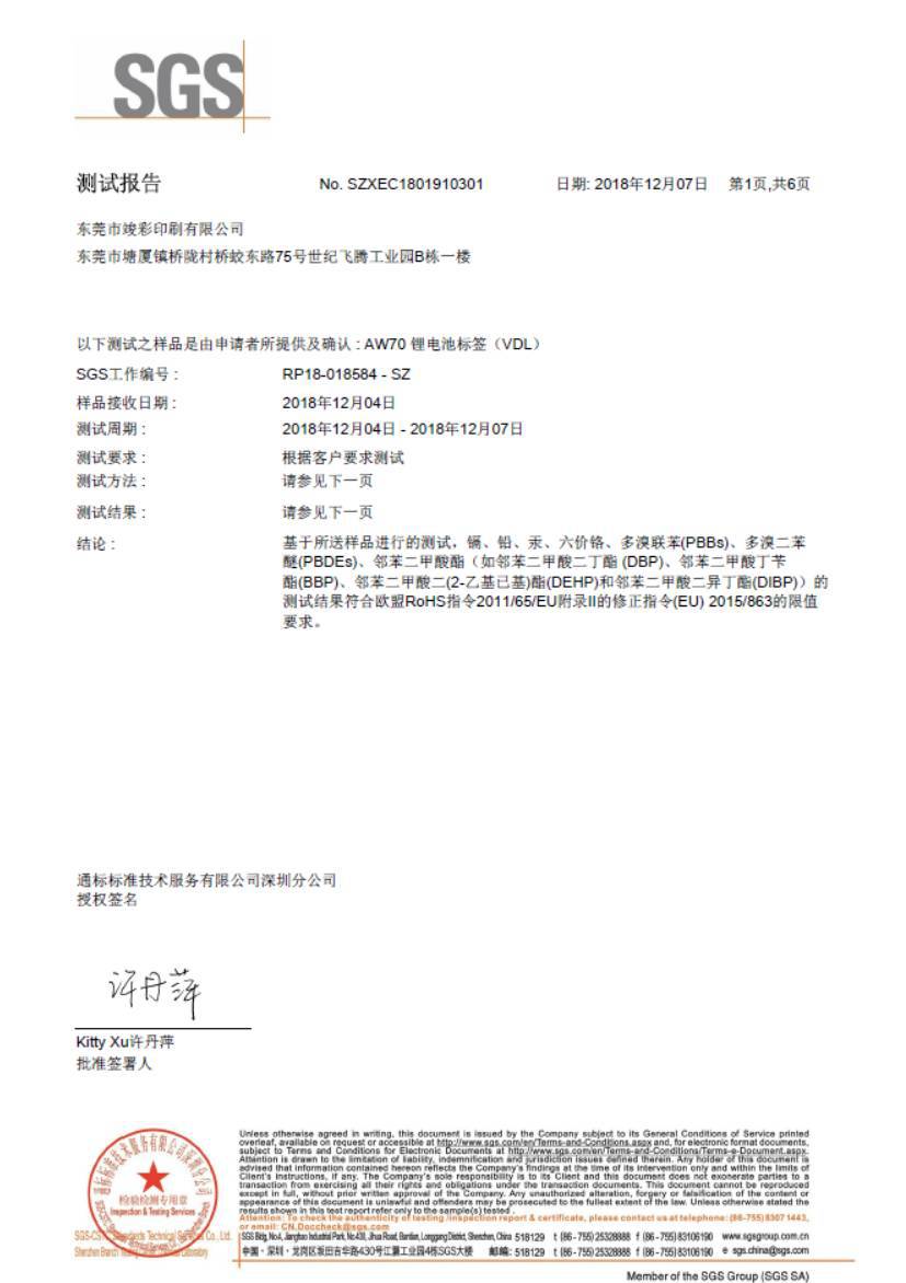 已通过SGS机构认证