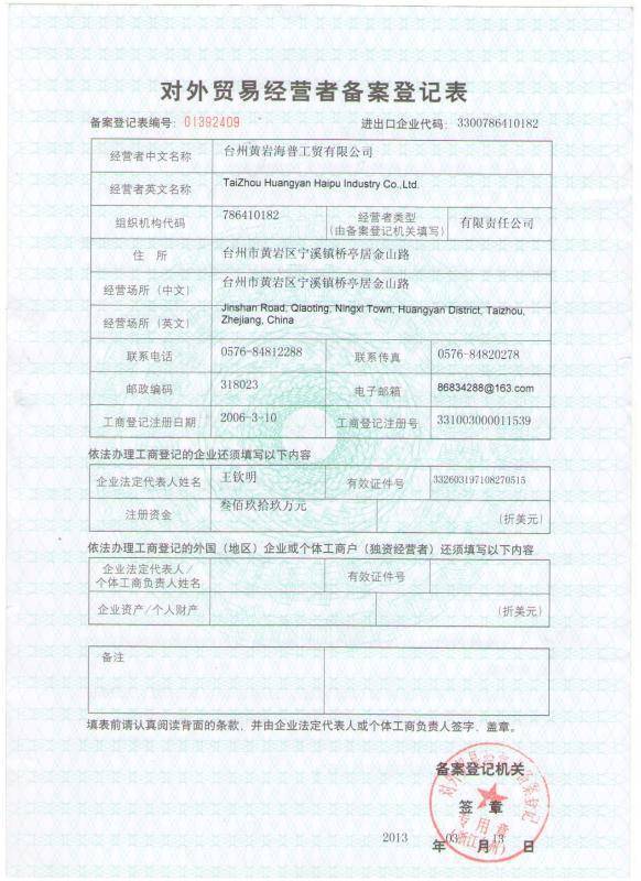 台州黄岩海普工贸有限公司