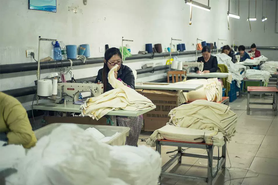 特殊工艺印花 裁剪 织造 包装成品 后整包装 印染水洗 轮轴 填充 开版 缝合 脱水烘干 包装 滚边、止口、缝合