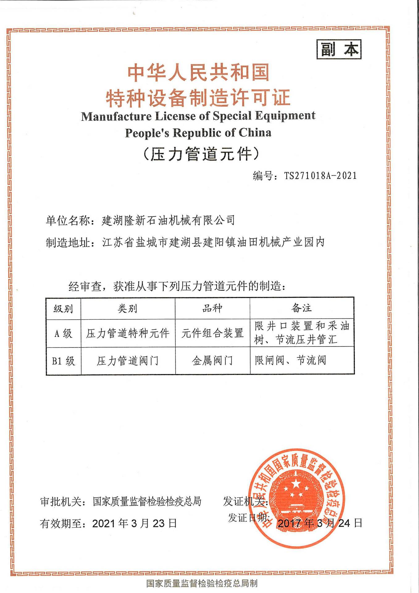建湖隆新石油机械有限公司位于江苏省,江苏省民营科技企业;中国石化物资装备公司和中国石油物资装备出口公司网络成员单位。企业通过了二级标准化和计量保证确认的合格验收。2011年12月,通过了美国石油学会A...