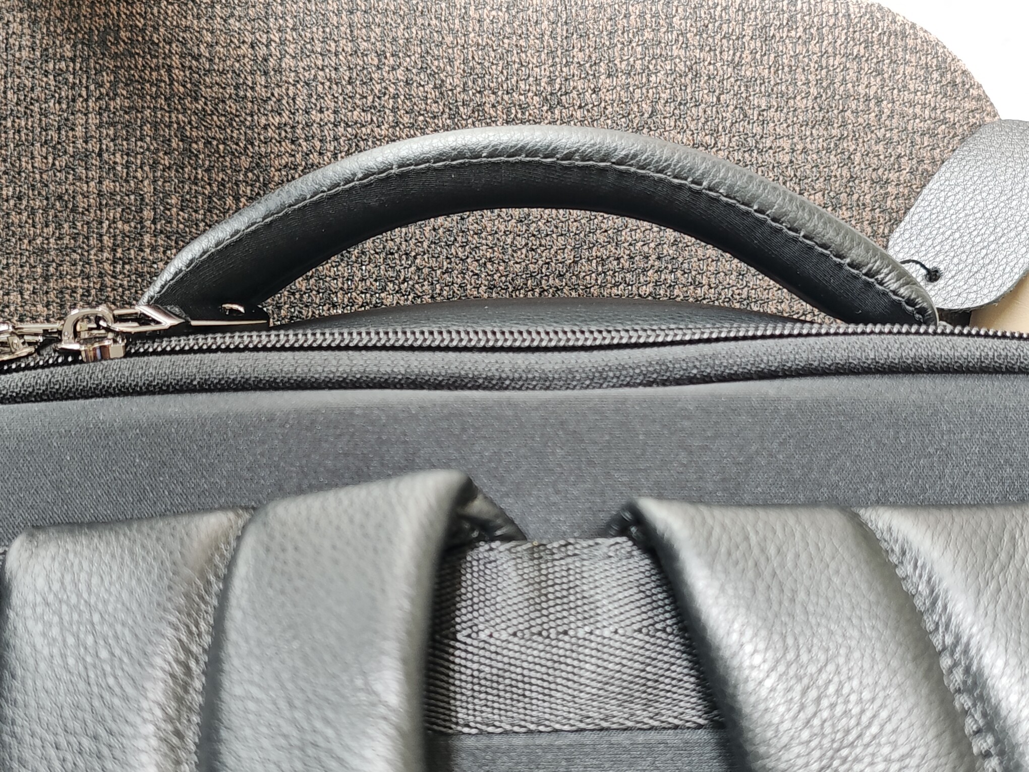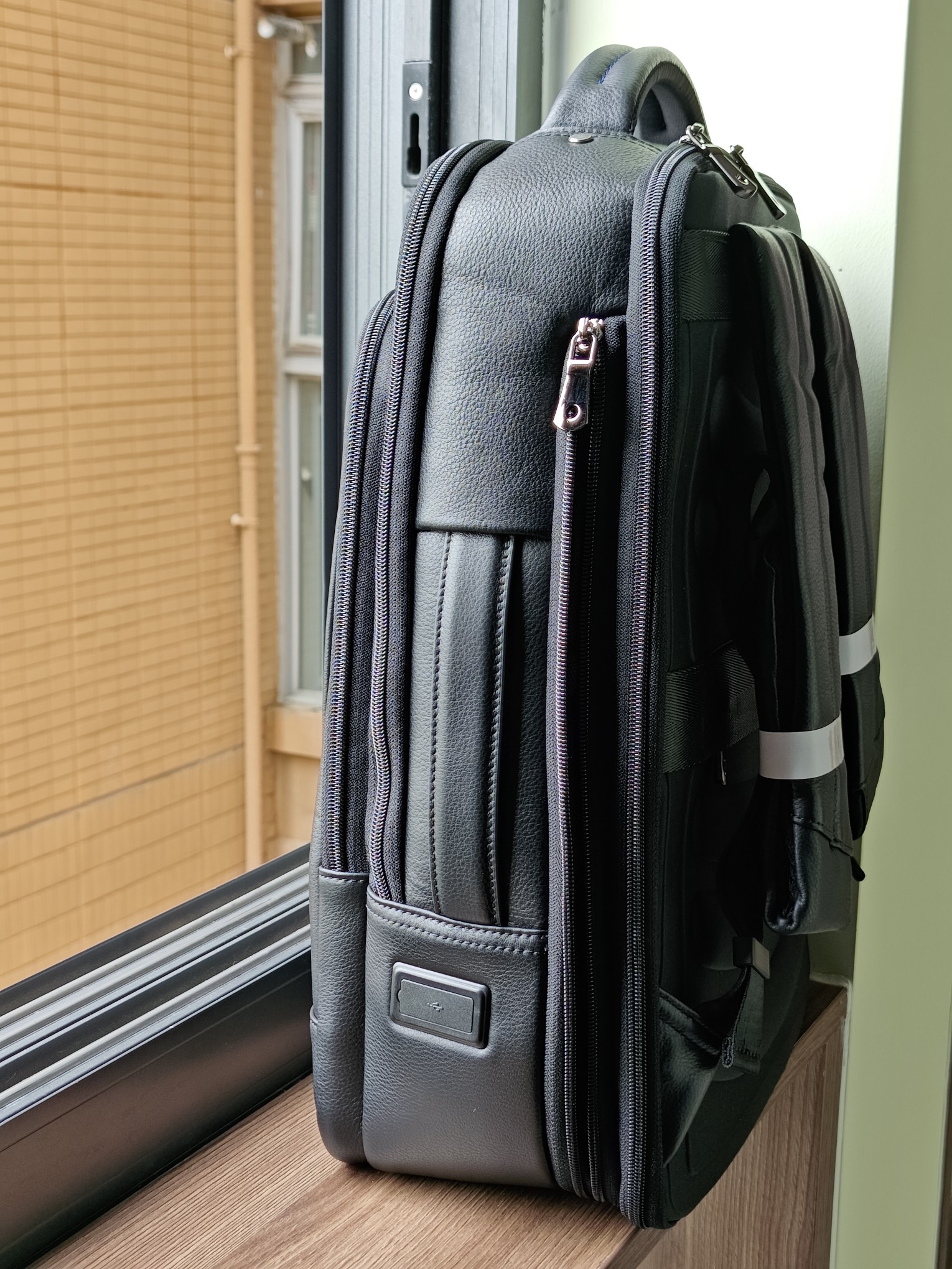 算是自己买过的最满意的偏商务的背包了。TUMI的款式一直找不到喜欢的。这个背包细节满满,没有一根多余的线头。甚至很多优秀的细节在商品页面都没有提到。比如侧面的把手它是伸缩隐藏式的,虽然看着有点像皮带。肩带也是有固定卡扣的。顶部的把手非常的厚实,有1.5cm厚,提起来,手感圆润而饱满。肩带宽度7cm到7.5cm渐变设计,堪比不少登山包的设计了,即使行李稍微重一点,背着也不勒。里面的数据线有type c和普通的大的接口共2种,不过没法拆卸。2024.9.30