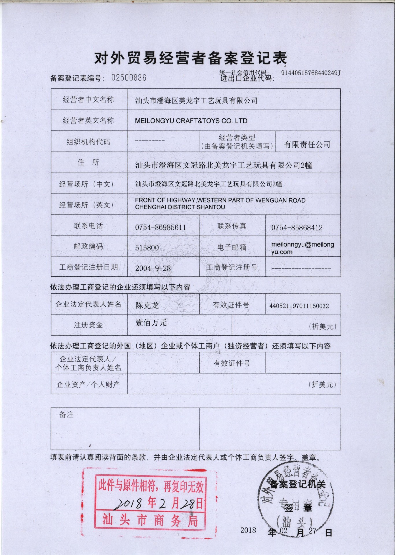 汕头市澄海区美龙宇工艺玩具有限公司