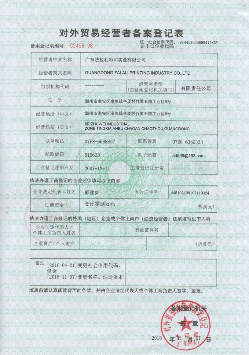 广东法拉利彩印实业有限公司