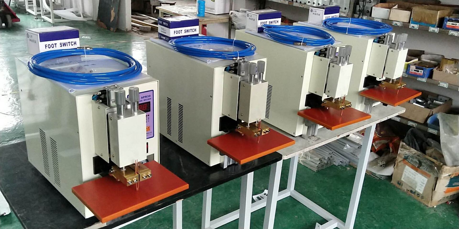 本工厂主要生产:电池行业点焊机设备,电池测试仪器设备;五金点焊机。 主要产品有:3000A/5000A/8000A逆变直流点焊机/自源化电源,储能点焊机/电源、气动/电动机、LED...