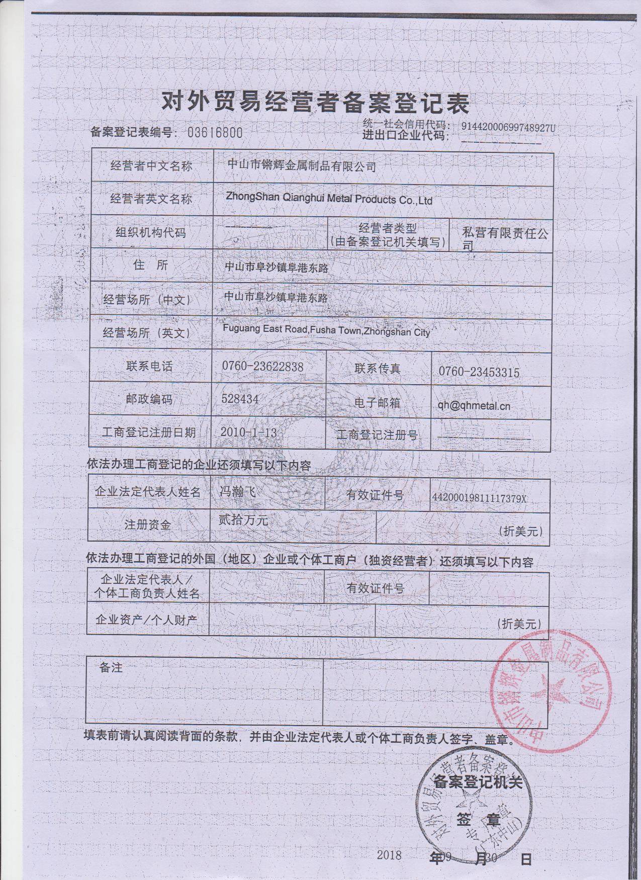 中山市锵辉金属制品有限公司