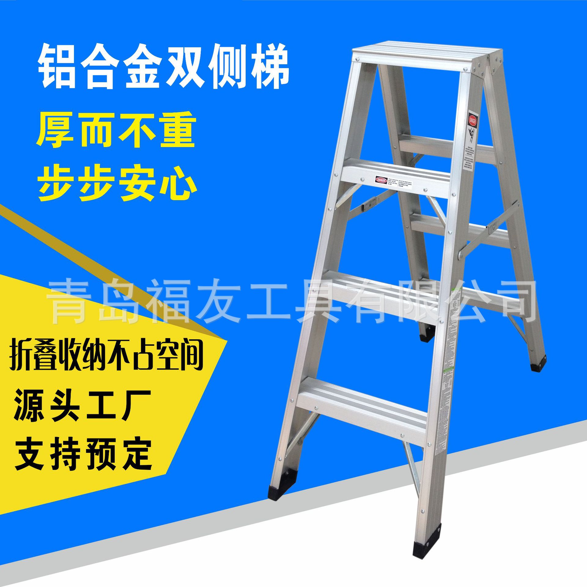 青岛福友工具有限公司成立与2007年,位于美丽的海滨城市青岛市黄岛区,本公司主要从事玻璃钢梯具,铝合金梯具的研发、生产、销售。拥有玻璃钢拉挤线7条,相关设备60余台,公司已通过IS9001质量体系认证...