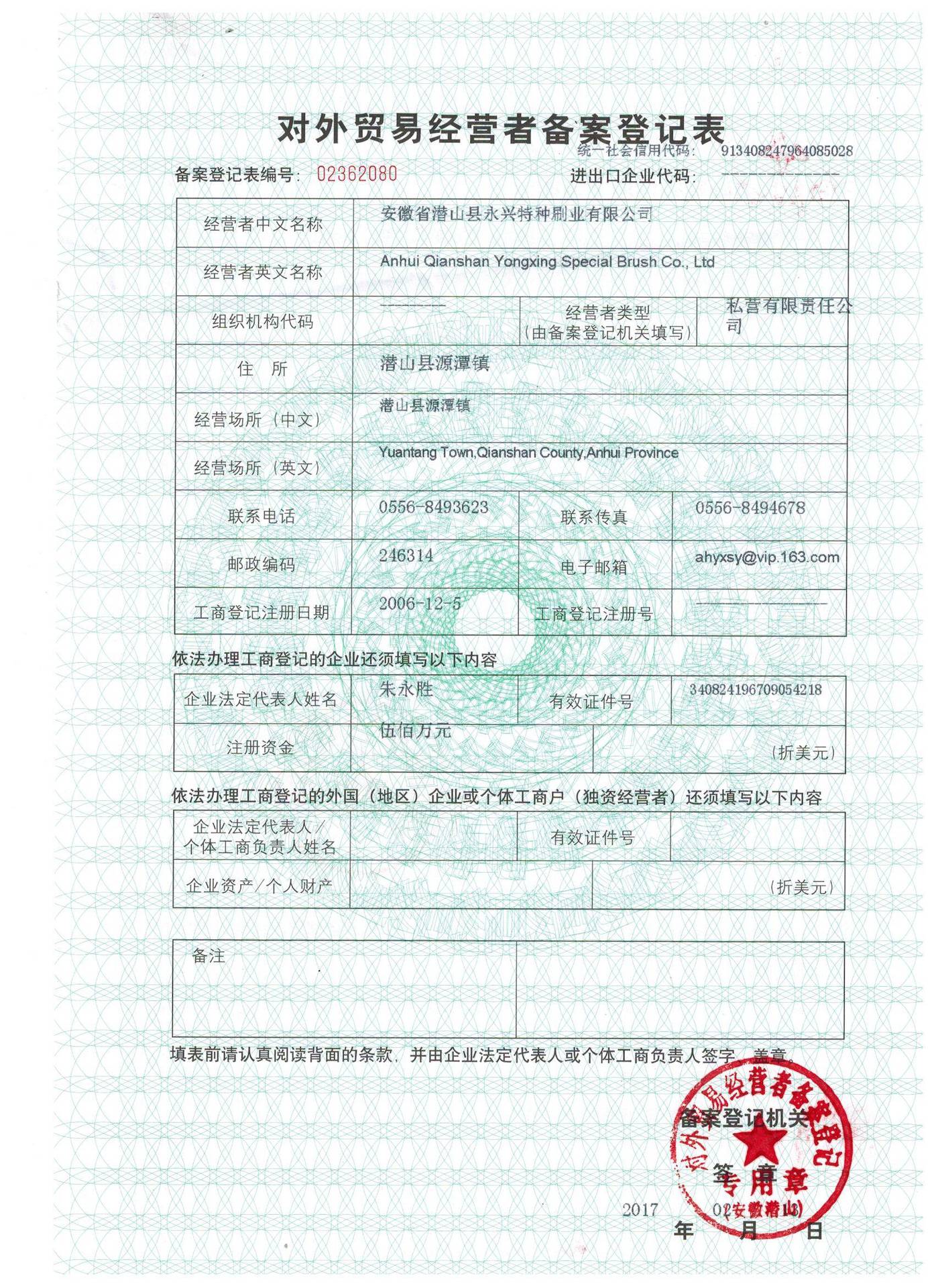 安徽省潜山县永兴特种刷业有限公司