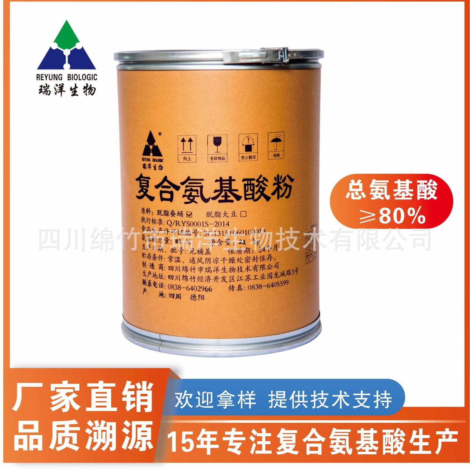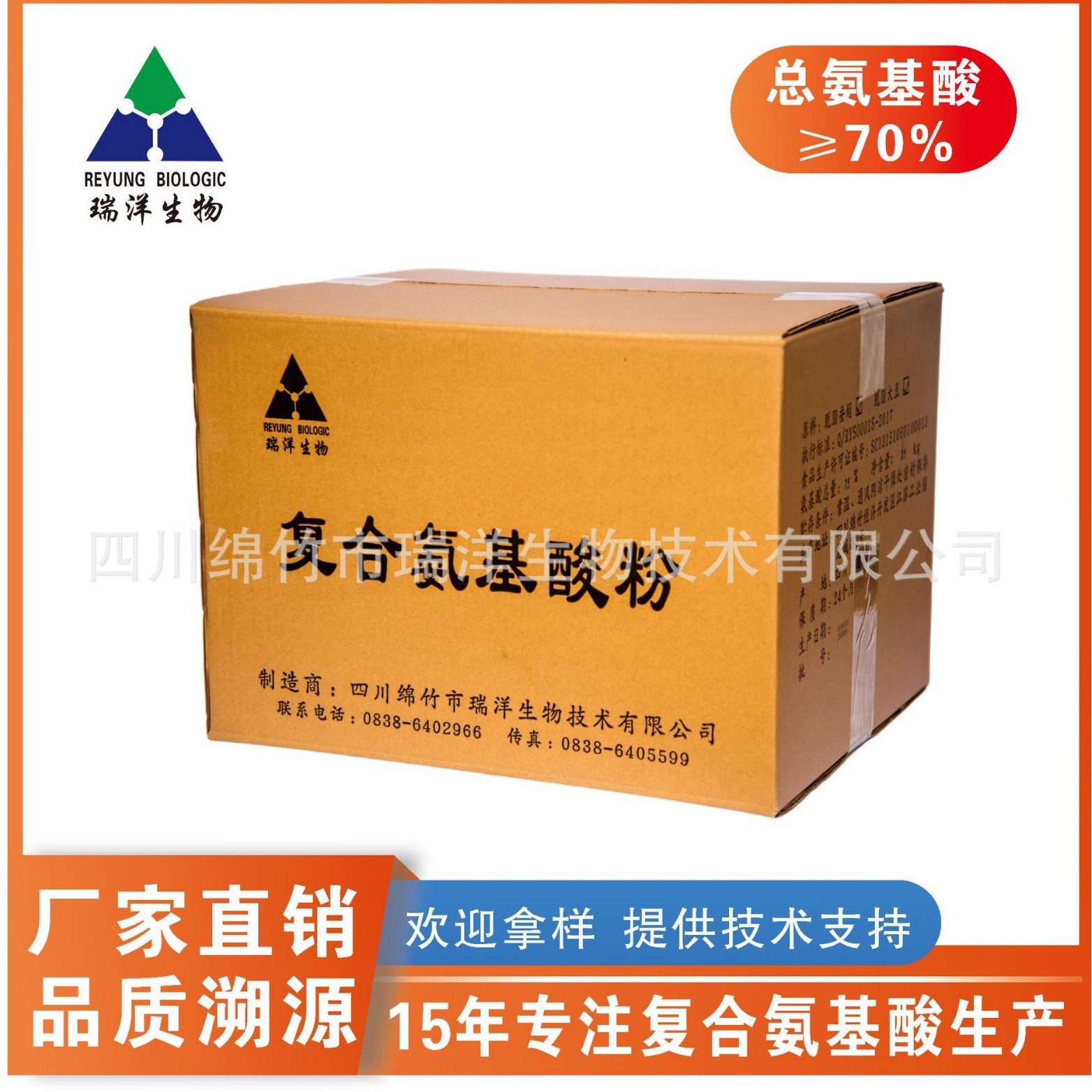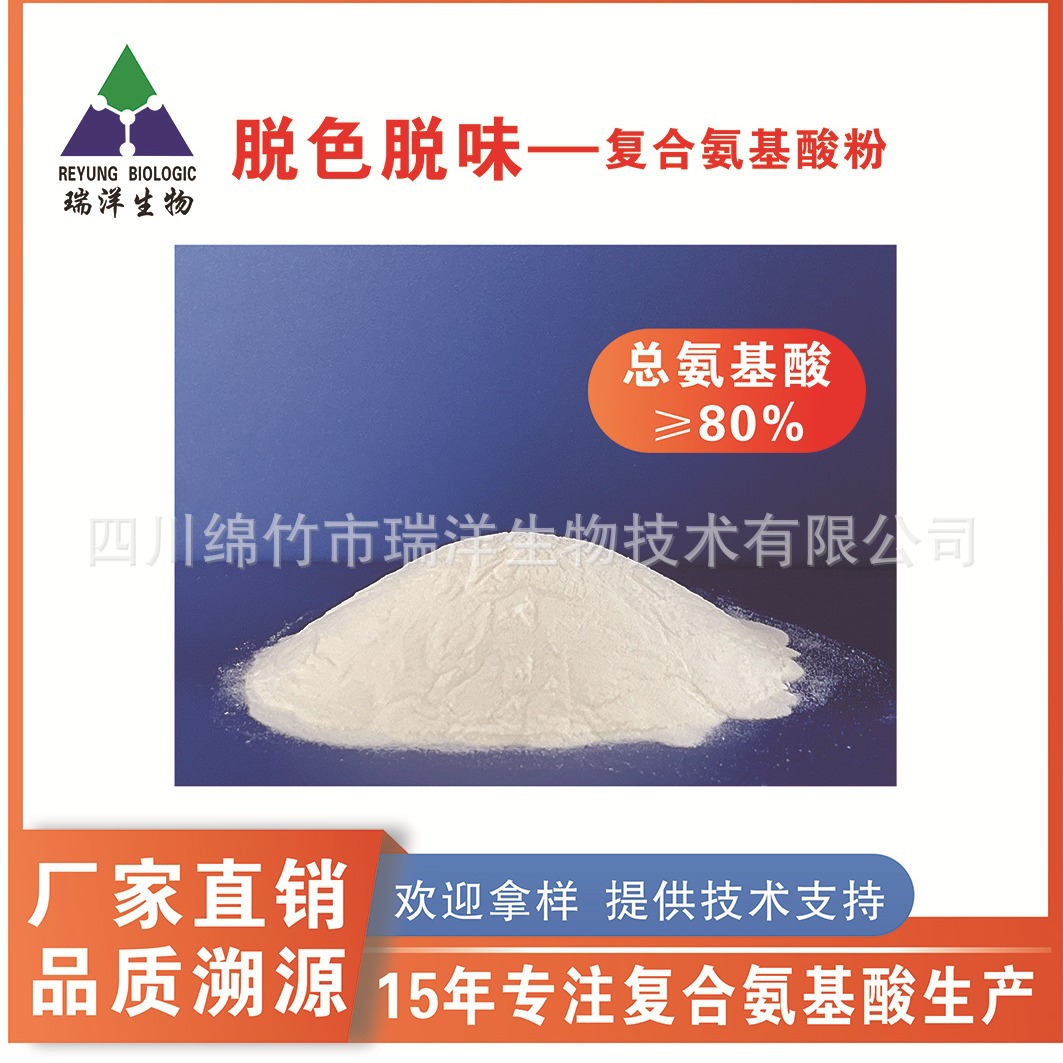 四川绵竹市瑞洋生物技术有限公司位于四川省级经济开发区-绵竹高新产业园区内,公司主要研发、生产、销售复合氨基酸粉系列产品、酶解复合氨基酸粉、蚕蛹多肽等产品。产品广泛应用于医药保健食品、强化食品、宠物饲料...