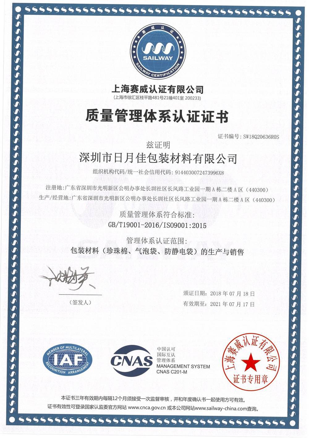 深圳市日月佳包装材料有限公司成立于2000年,隶属深圳市包装行业协会会员单位,是一家服务于高科技产品、各种精密电子、仪器、防静电包装的专业包装材料生产企业。发展至今,现已拥有一套完整的综合管理体系,并...
