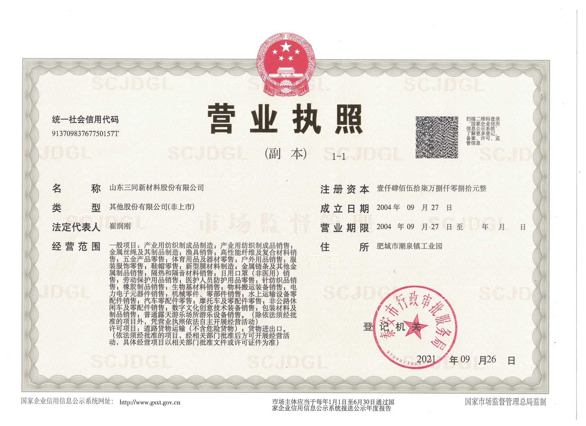 山东三同新材料股份有限公司