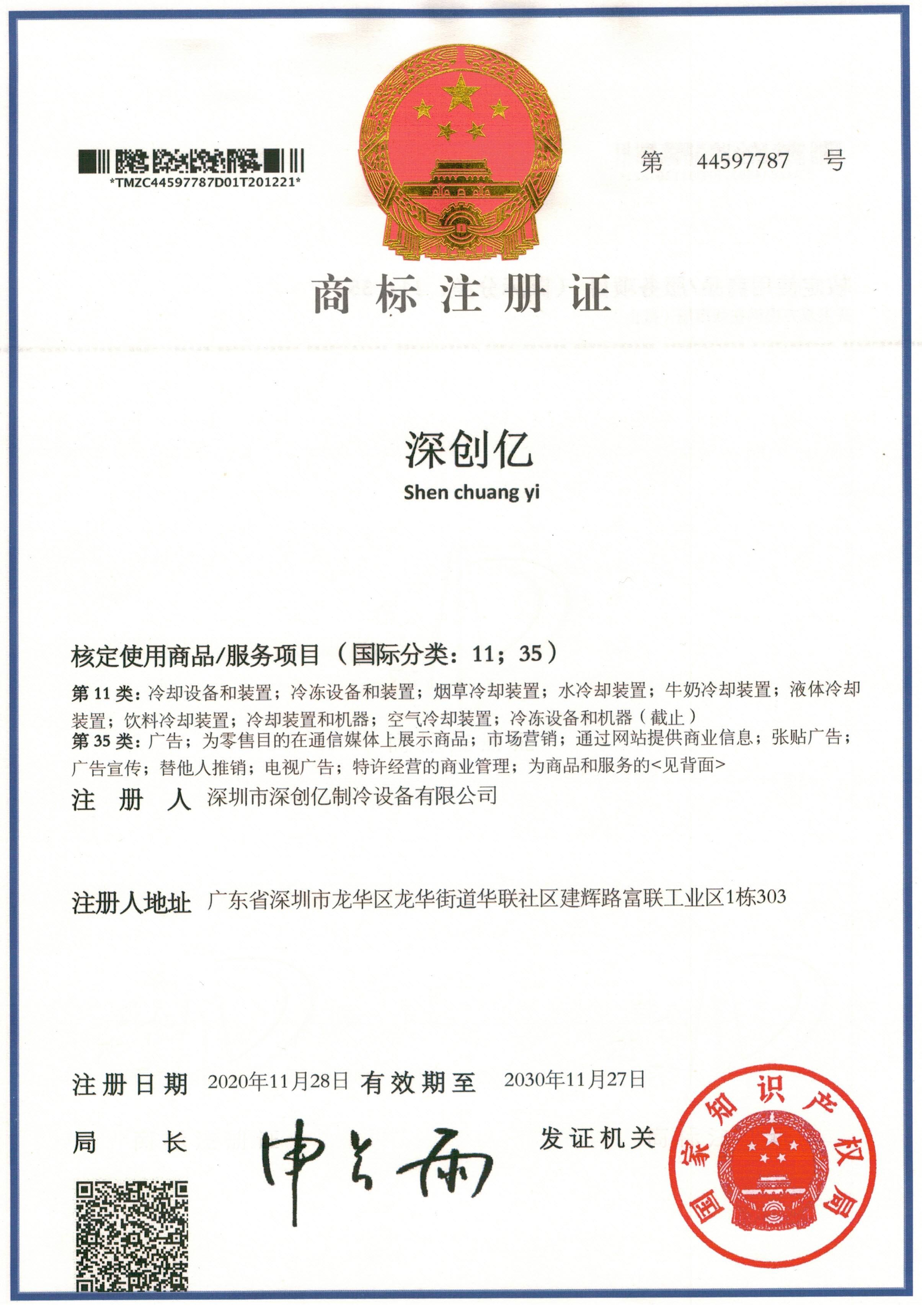 深创亿制冷 SHEN CHUANG YI REFRIGERATION SC深创亿