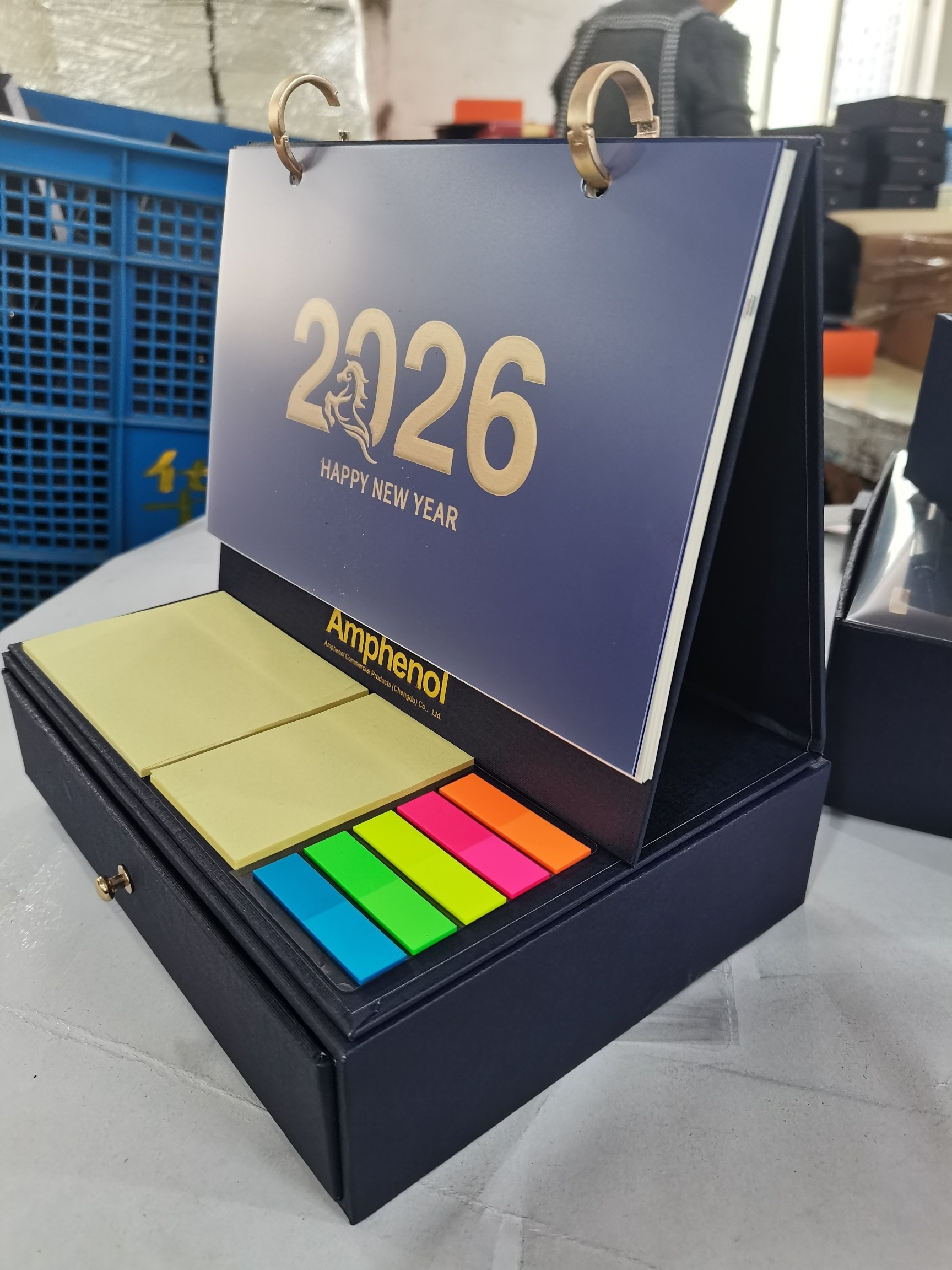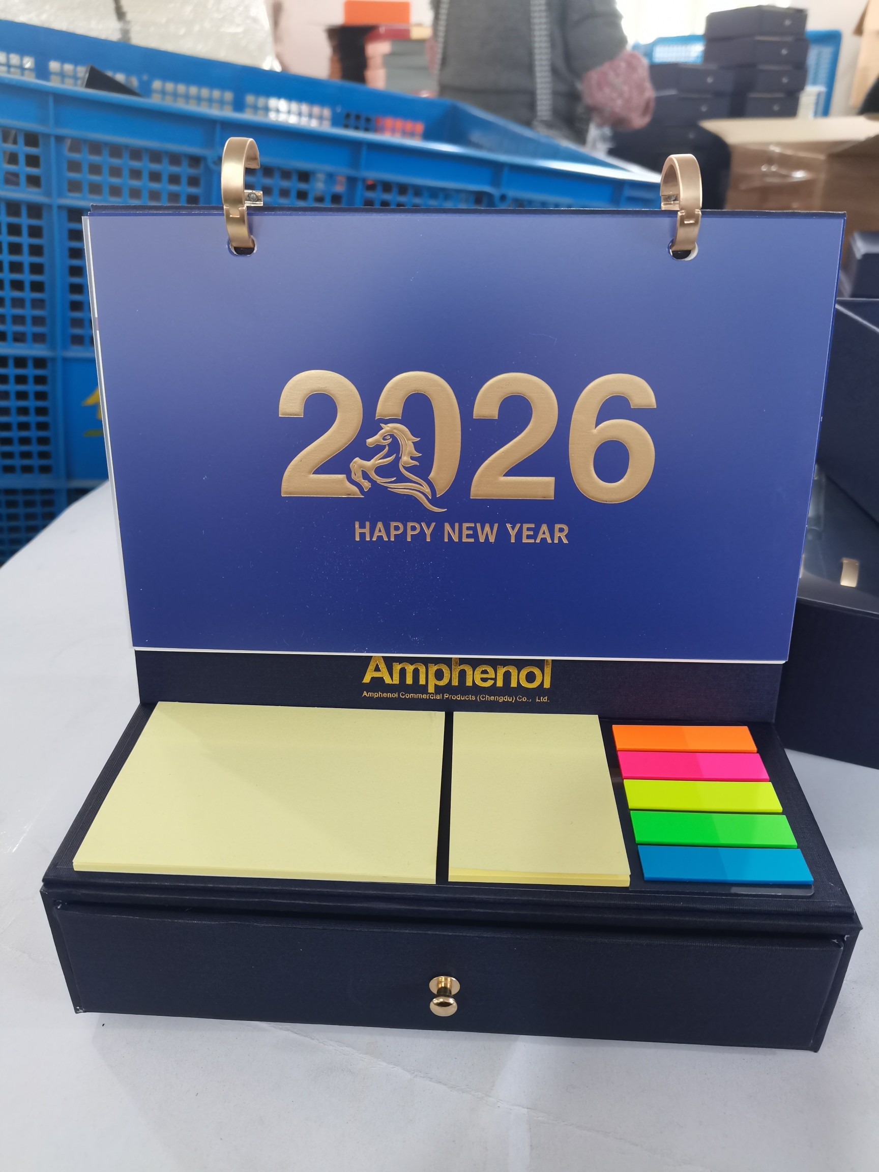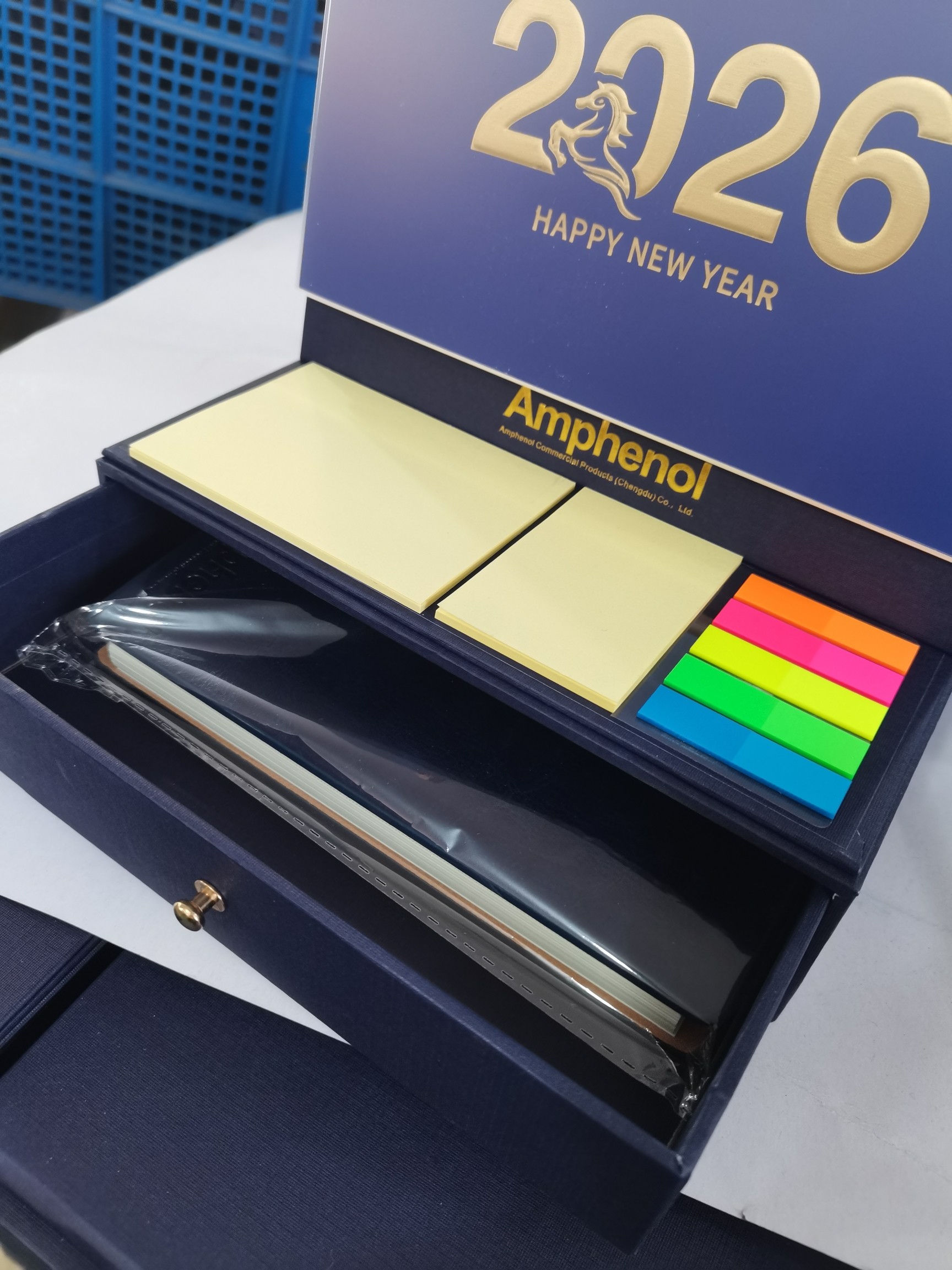 在他家选了好几套礼品,最终确定这款宝石蓝的台历套装,定制了1200套,数量多价格给的很优惠,台历设计很有创意,超实用,喜欢2025.12.15