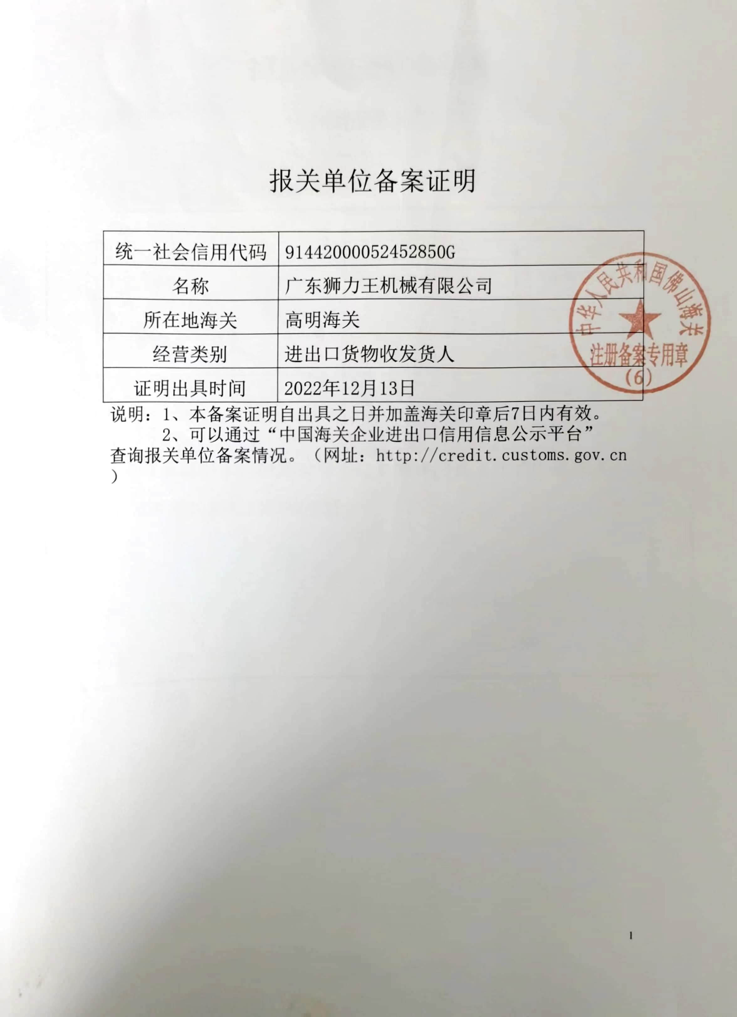 广东狮力王机械有限公司