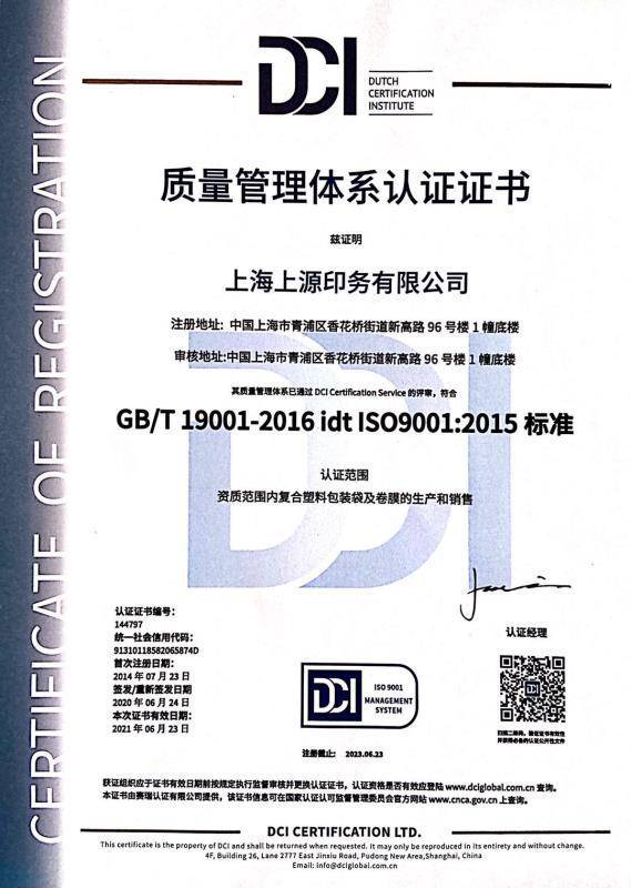 上海上源包装制品有限公司成立于2004年,2011年公司改名为“上海上源印务有限公司”位于风景秀丽交通便利的上海市青浦区香花桥街道,经全厂员工共同努力,现已发展为一家集印刷、复合、分切和制袋为一体的综...