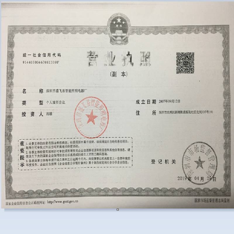 深圳市盛飞易智能照明电器厂