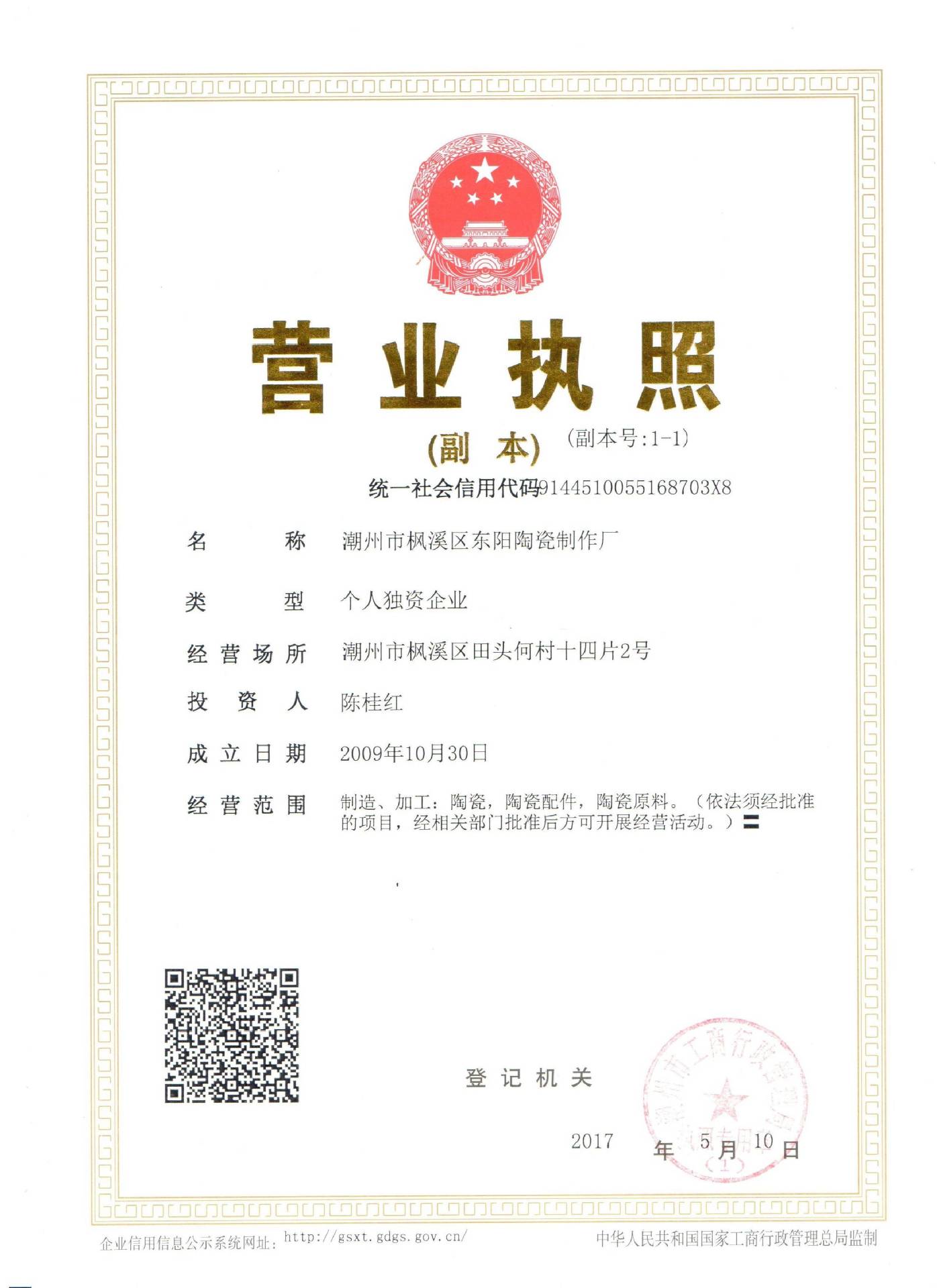 潮州市枫溪区东阳陶瓷制作厂
