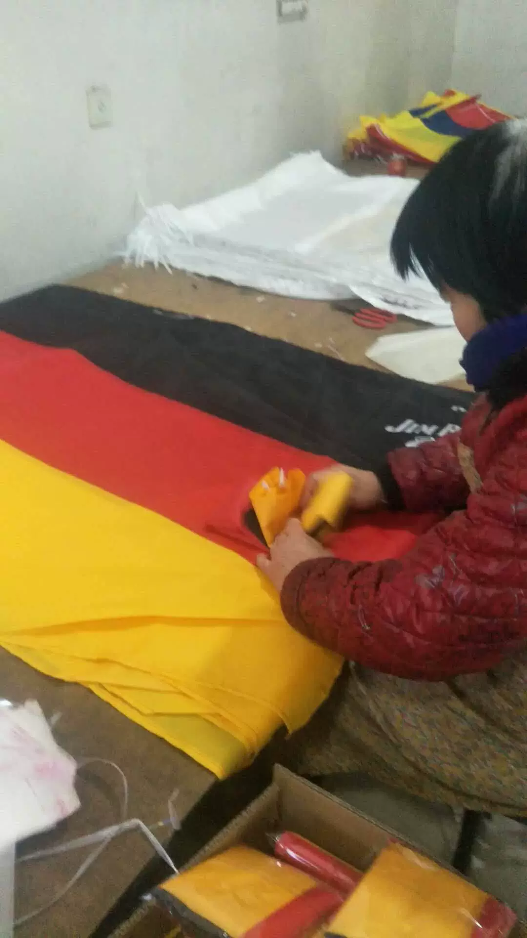 诸暨市旗王纺织品有限公司是一家专业生产和销售世界各国国旗、车旗、彩旗、桌旗、三角旗、广告旗等,也可来样定做,同时也销售服装,各类面料,欢迎来厂考察参观!