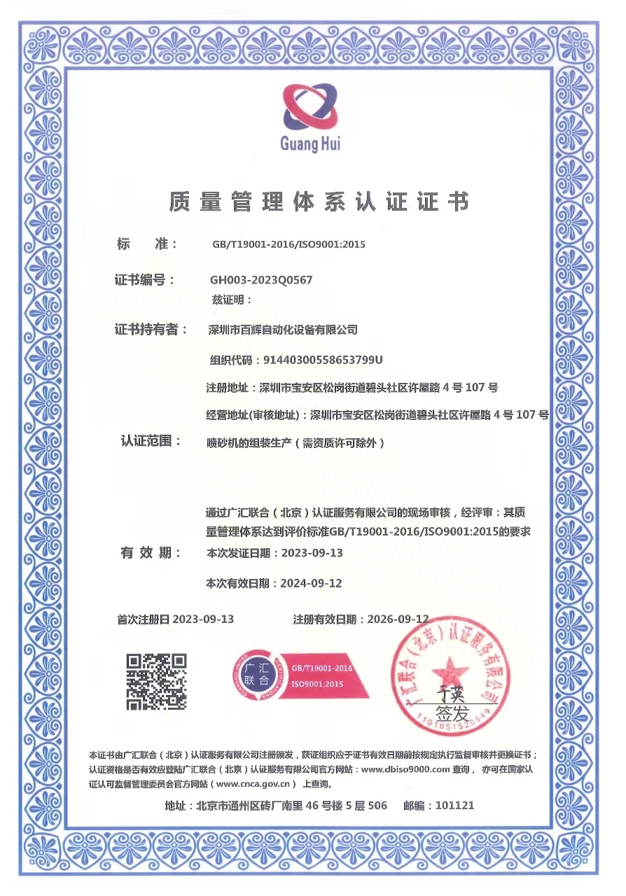 深圳市百辉自动化设备有限公司,创建于1998年,起初为深圳市百辉喷砂机械厂,工厂位于宝安西乡。于2010年7月份变更为深圳市百辉自动化设备有限公司,公司迁至深圳市宝安区松岗街道碧头金嘉利工业园区,拥有...