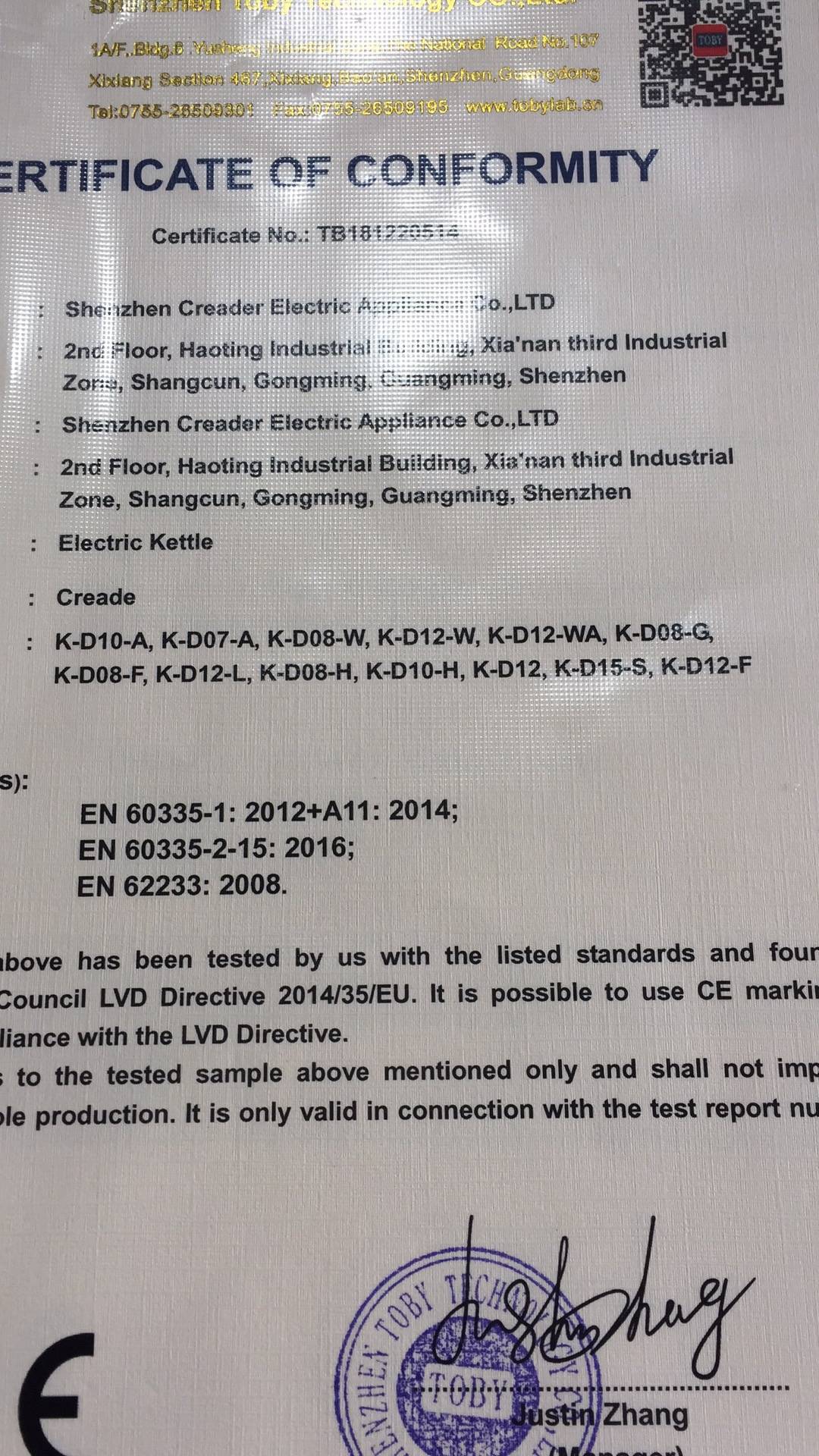 拥有CE认证
