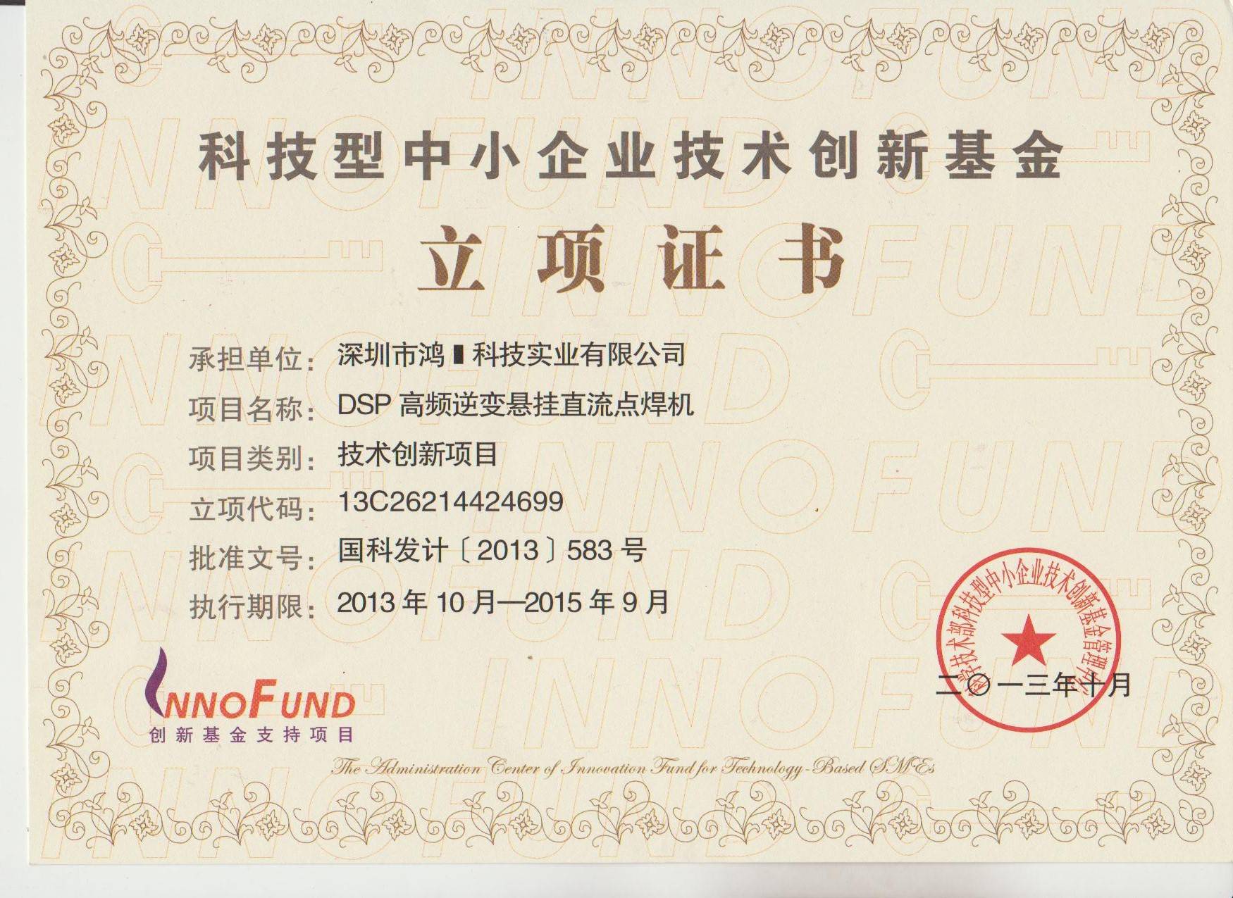 创新基金立项证书