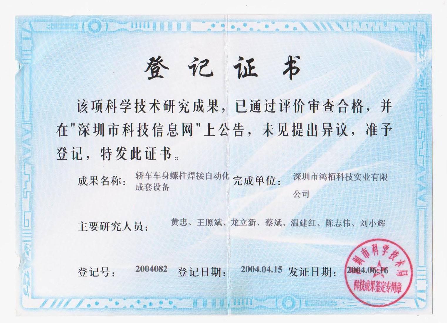 科技成果证书