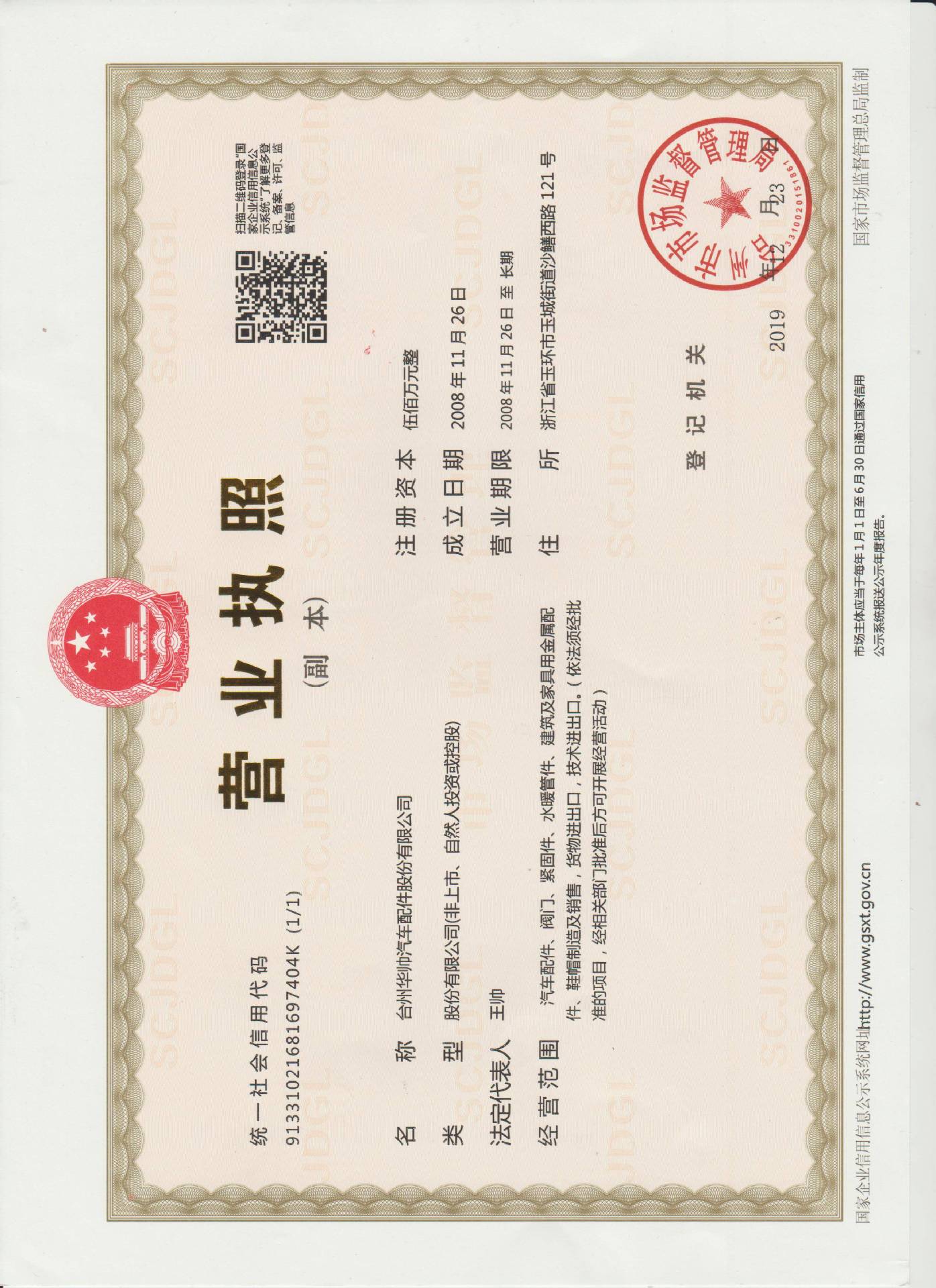 台州华帅汽车配件股份有限公司
