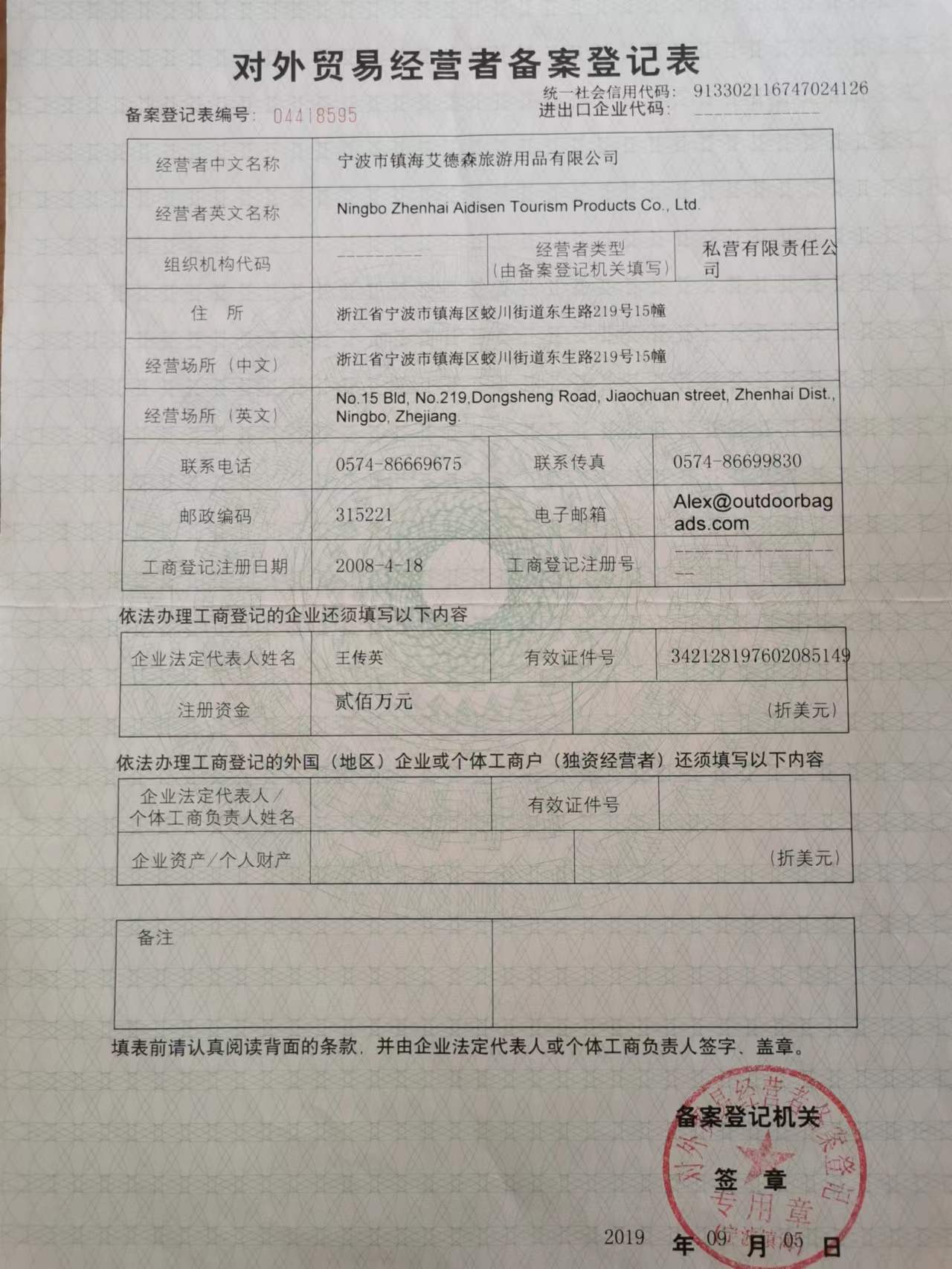 宁波艾德森旅游用品有限公司
