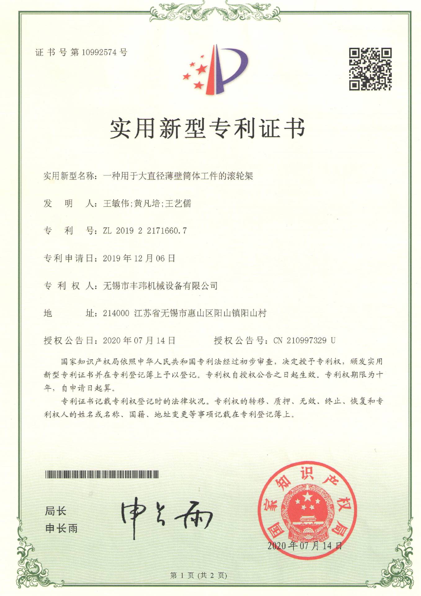 一种用于交叉导轨上的大型筒体转运装置ZL 2019 2 2147079.1
