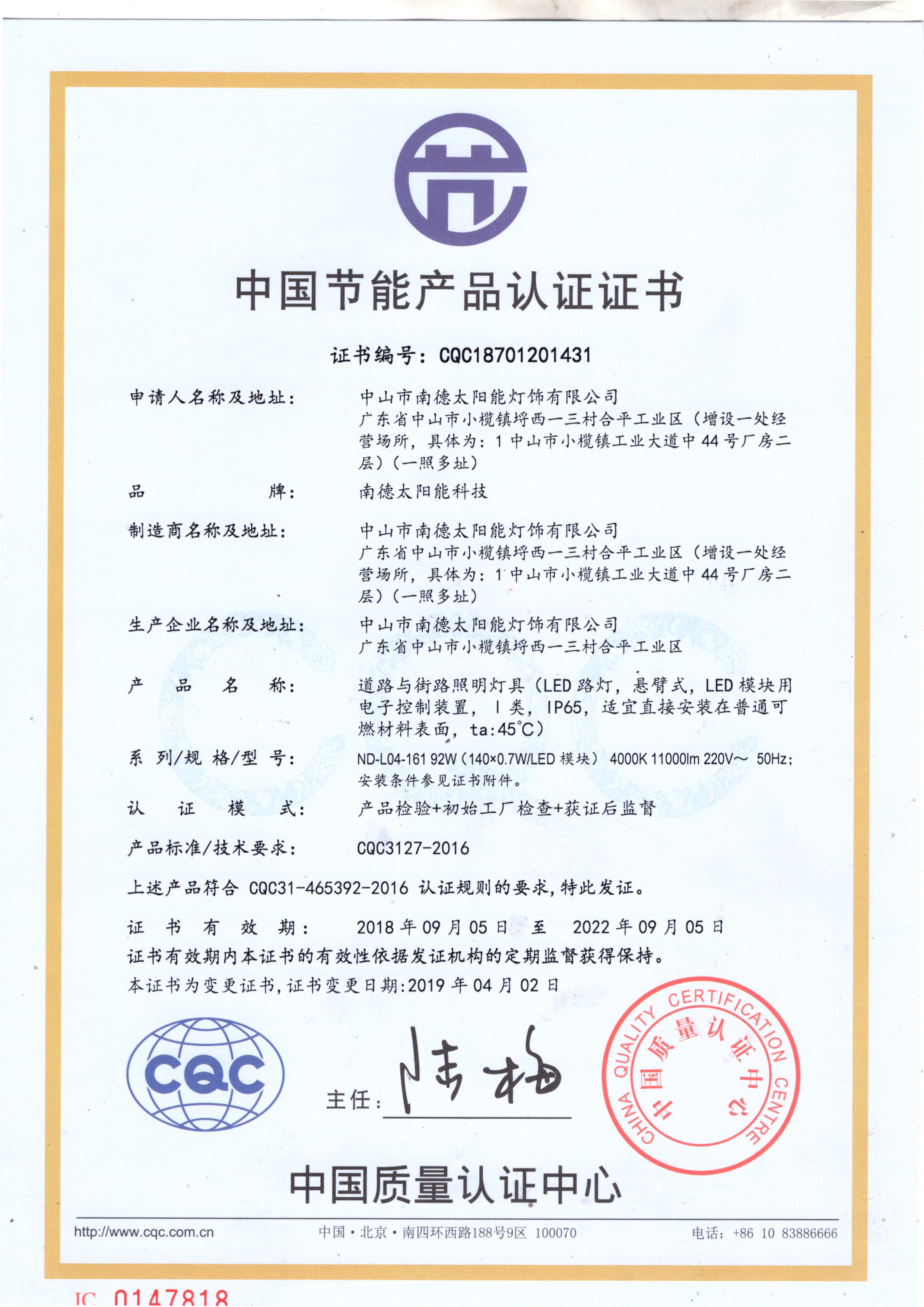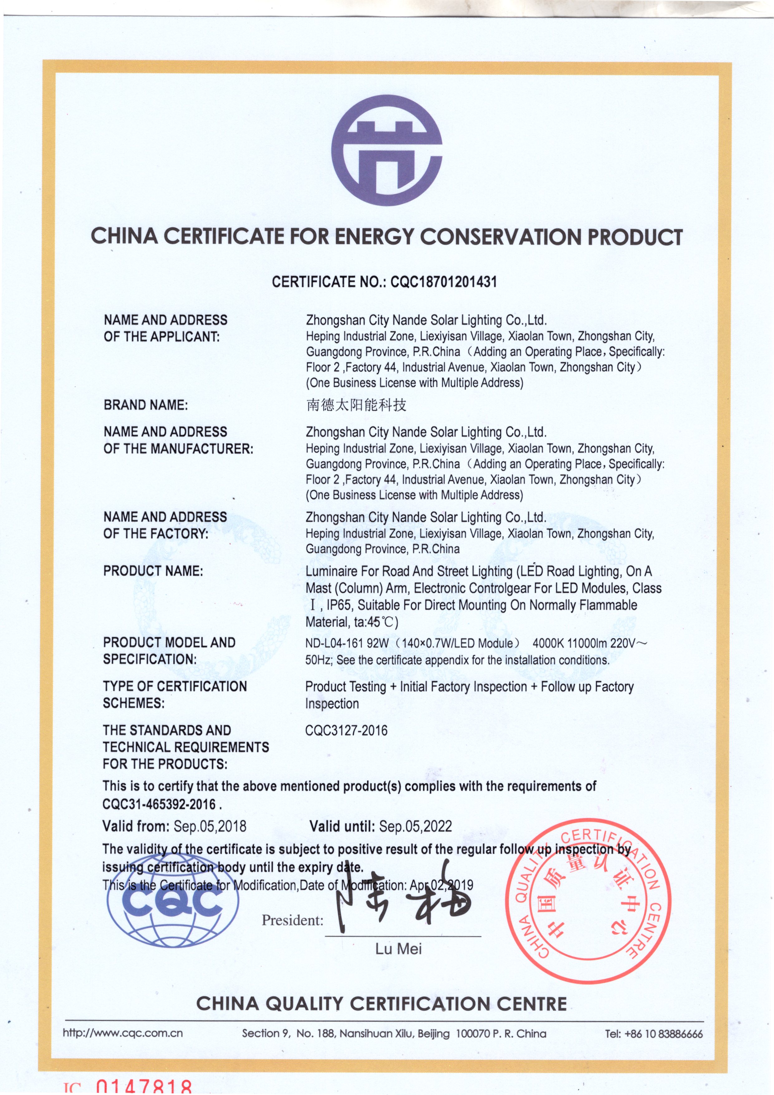 中山市南德太阳能灯饰有限公司,成立于2003年,注册资金5280万人民币,厂房面积占地50000平方米,员工300余人,年产值5亿元人民币,南德拥有自主独立的太阳能板生产线、锂电池生产线、LED光源生...
