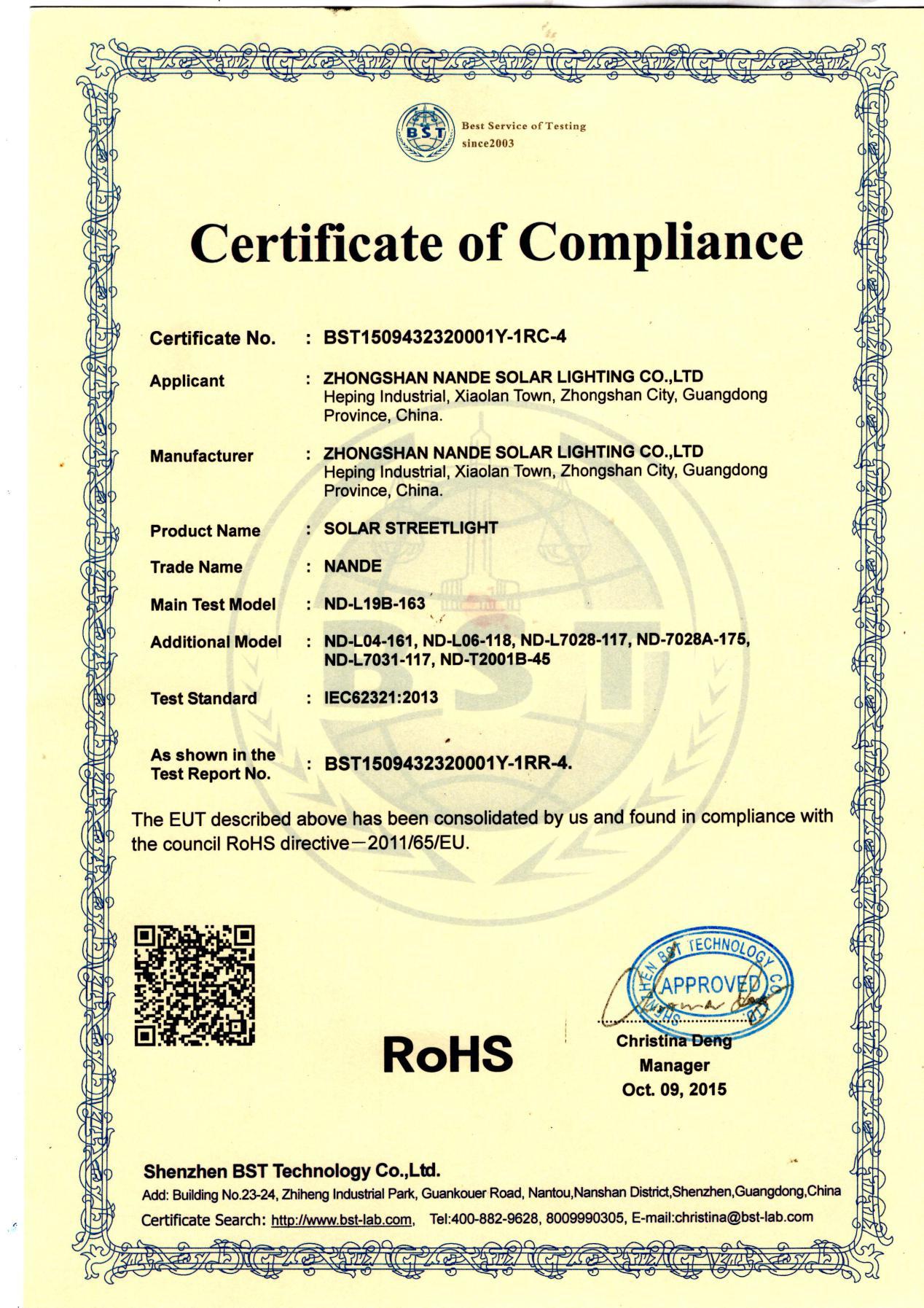 中山市南德太阳能灯饰有限公司
