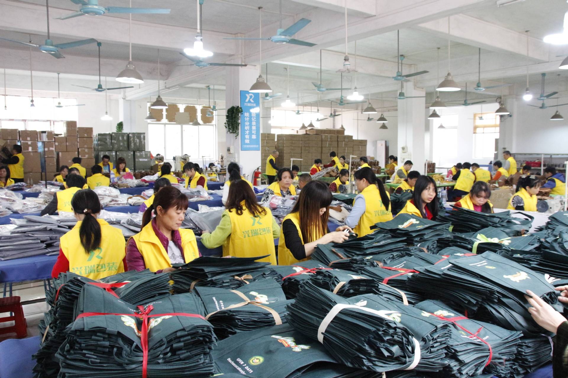 广州兴瑞包装制品有限公司是一家经炼18年之久,始终如一的布袋制品专业厂家。是一家集生产加销售产业链为一体的实力型企业。在广州有厂房面积6500平方米,月产量可生产产品500万件的能力。拥有自主进出口权...