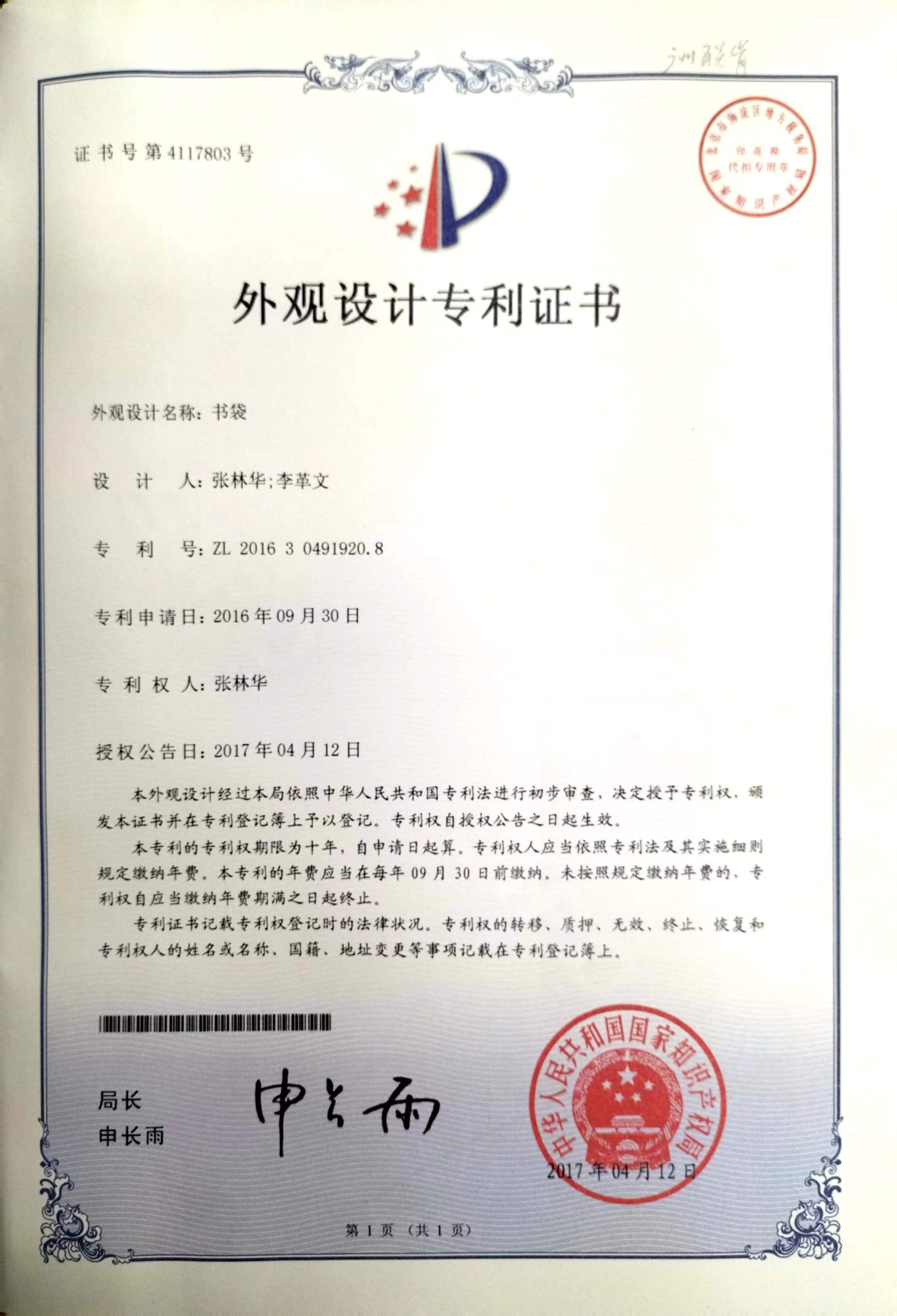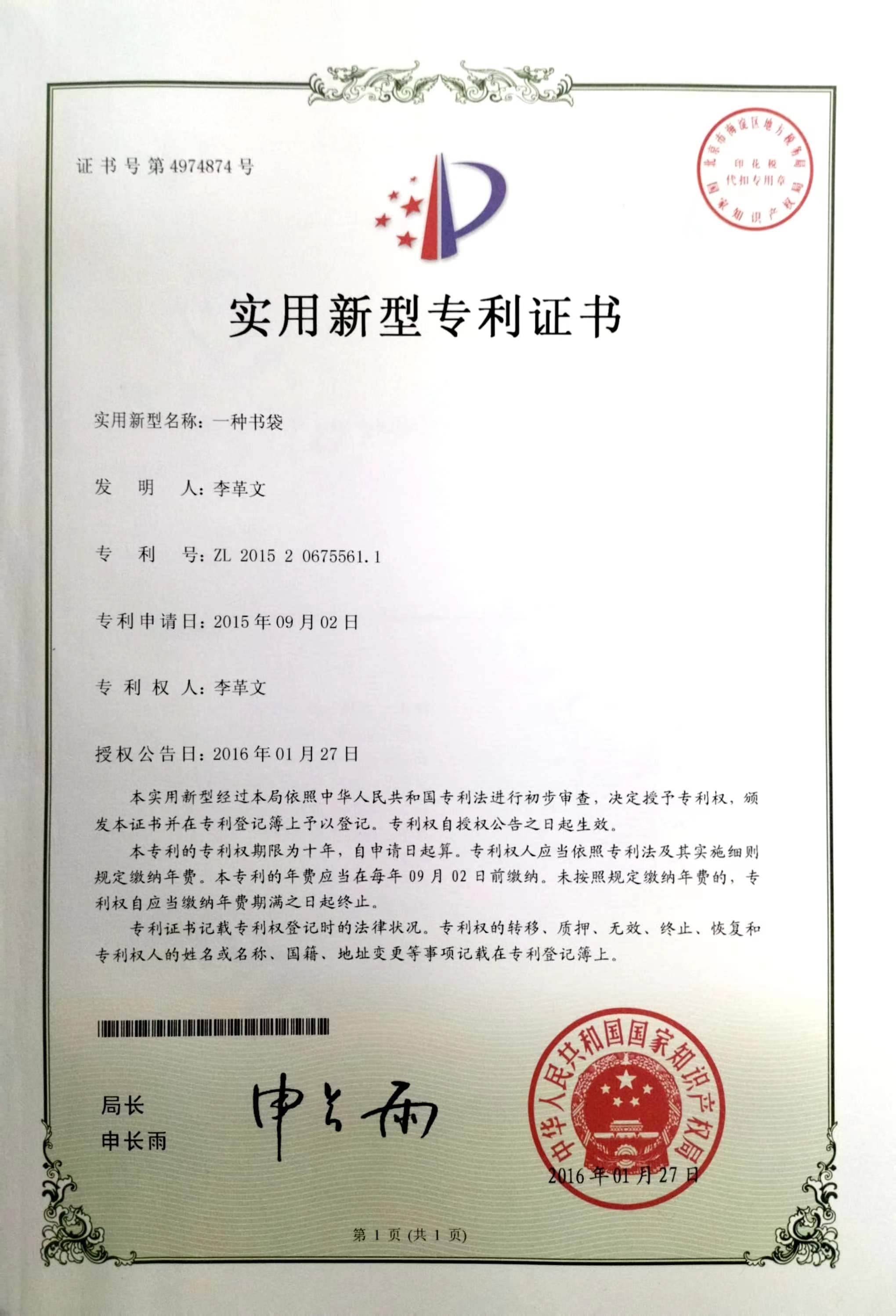 一种书袋ZL 2015 2 0372780.2