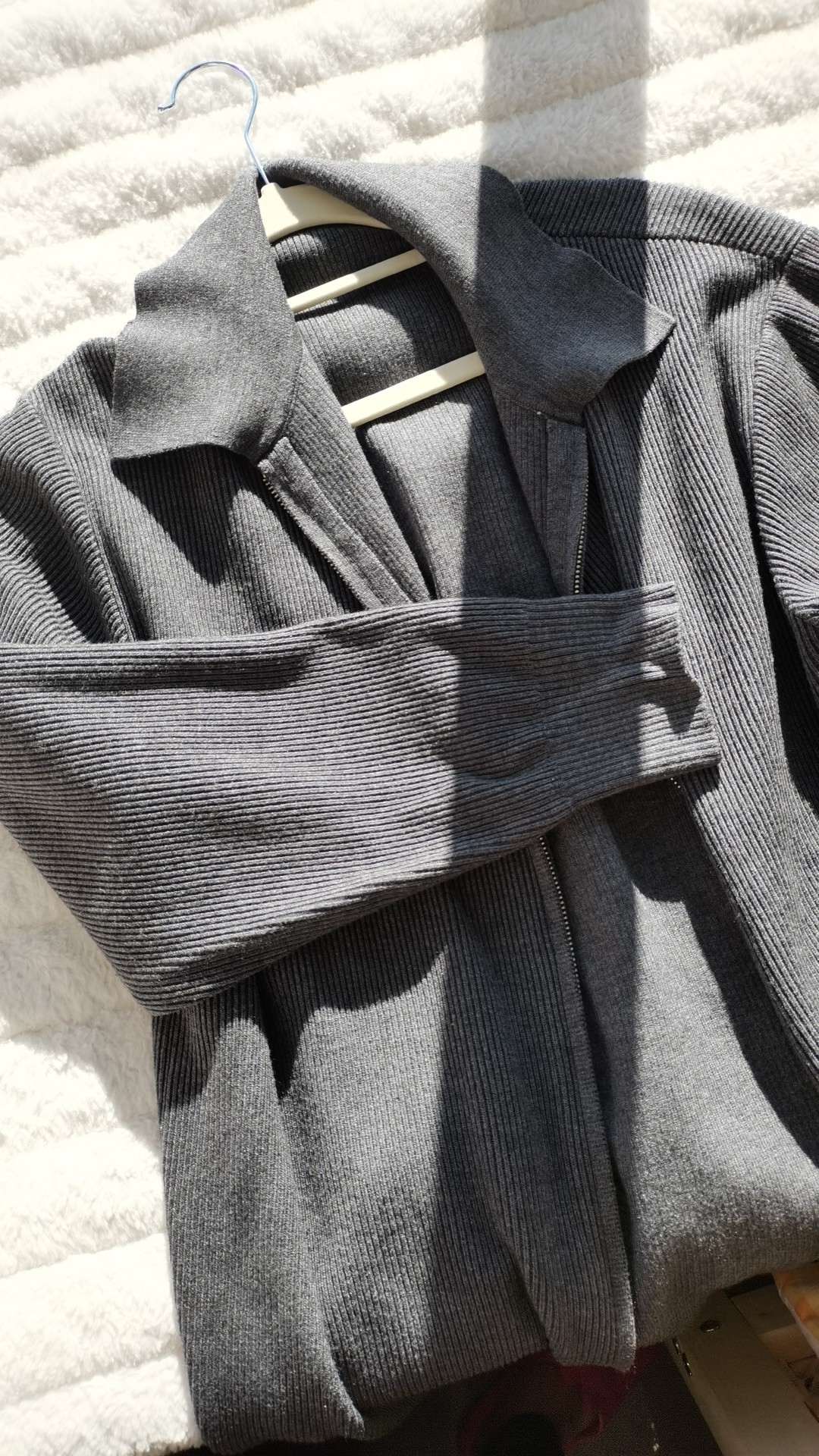 做工很好,穿着很板正,洗衣机混合洗然后平铺晾干后也没有变形,值得入手的衣服。2024.12.21