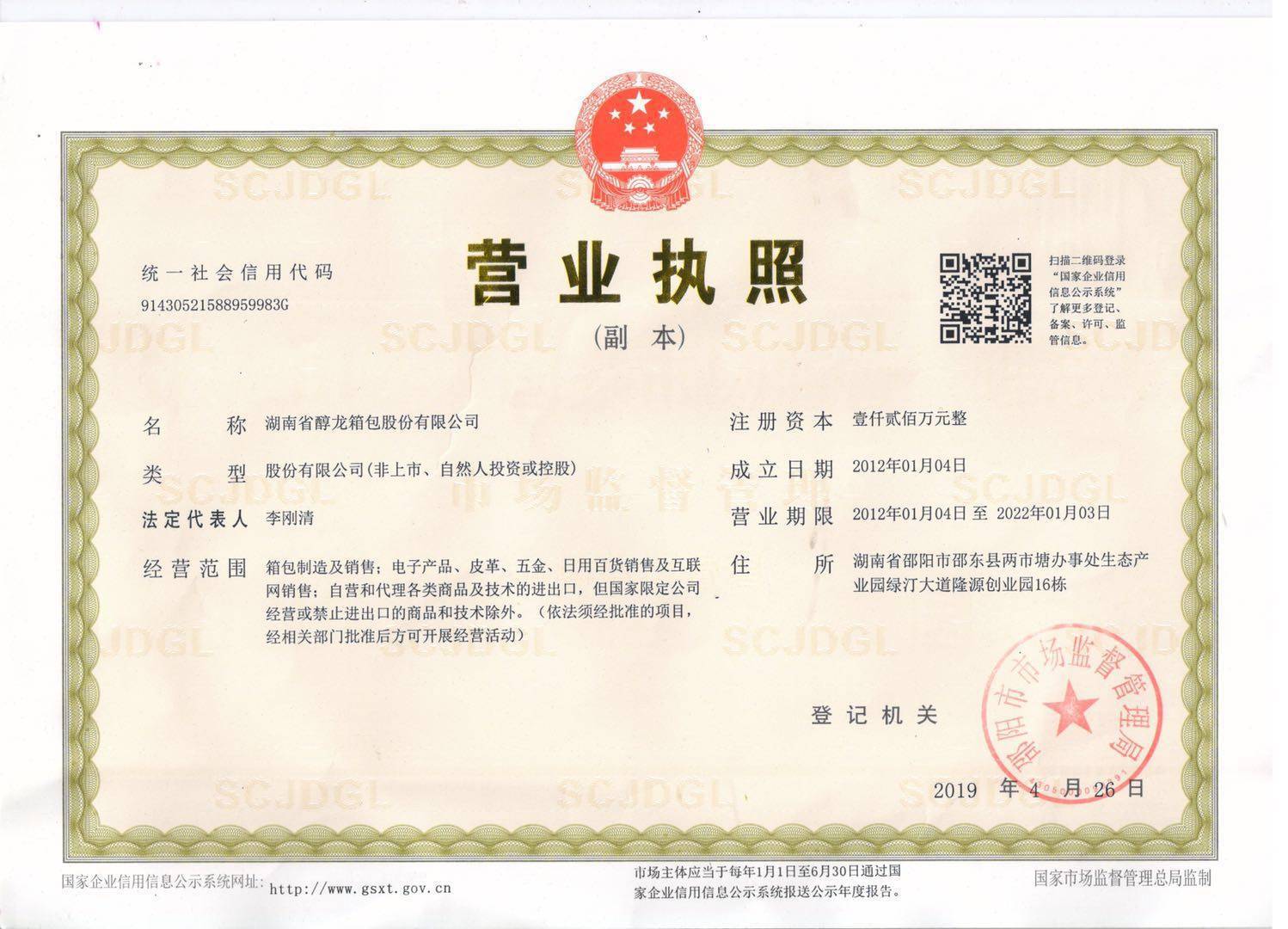 湖南省醇龙箱包股份有限公司