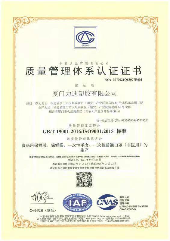 厦门力迪塑胶有限公司座落在美丽的海上花园城市——鹭岛厦门,成立于2005年是一家产业链完整、集专业塑胶用品研发设计、生产、销售及品牌运营为一体的现代化企业,主营:一次性手套、PE保鲜膜、保鲜袋、垃圾袋...
